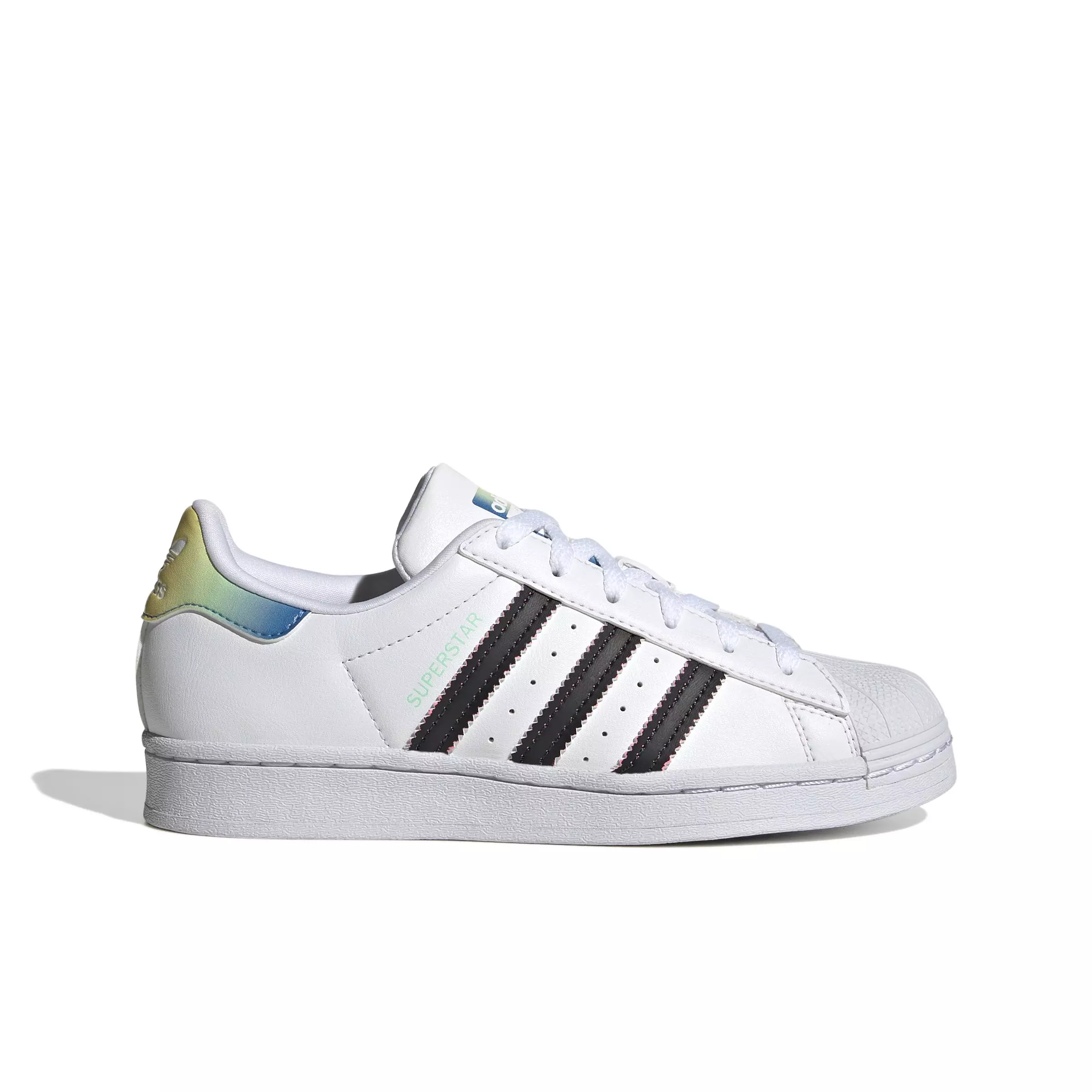Let your creativity shine. The adidas Originals Superstar "Ftwr White/Beam Pink/Core Black" Grade School Boys' Shoe continue to find new avenues for self-expression. This pair for juniors brings out your inner artist with lots of fun ways to express yourself: Use the lace tip to scratch off the black matte surface on the 3-Stripes to reveal vibrant colors underneath. Reveal a lot or a little, or let it wear off naturally. Art is meant to be shared, so we made these shoes interactive, challenging you to discover their true colors. Made with a series of recycled materials, this upper features at least 50% recycled content. This product represents just one of our solutions to help end plastic waste.Features