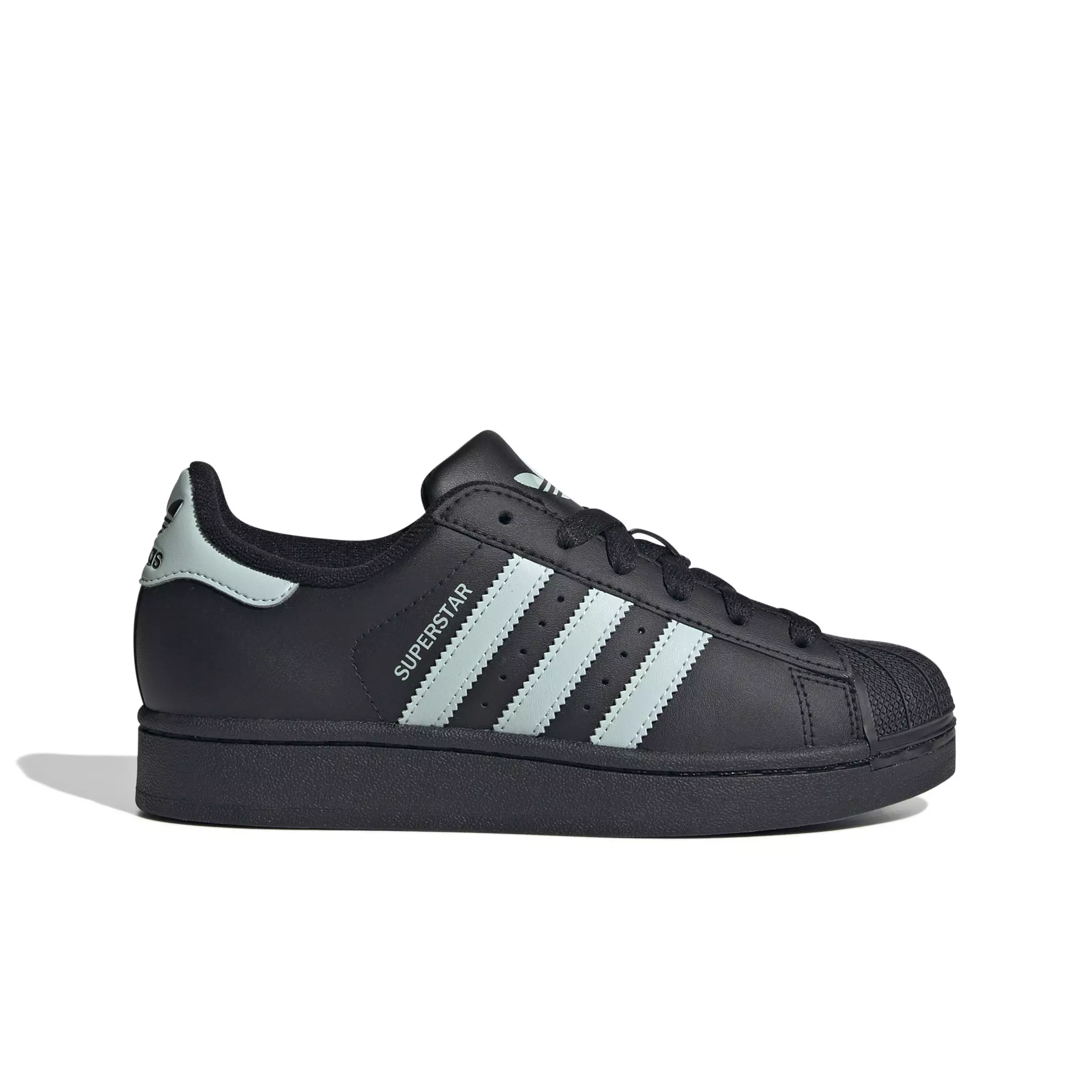 These adidas Originals Superstar II "Core Black/Ash Green/Ash Green" Grade School Boys' Shoe give you all the features you crave from the original like the famous shell toe, serrated 3-Stripes and a box logo on the tongue. With a leather and synthetic upper, these retro-inspired kicks provide all-day comfort and style. A look that dominated in the '90s and 2000s is still back and still going strong. Hits of color on the 3-Stripes and heel tab make these trainers pop.Features