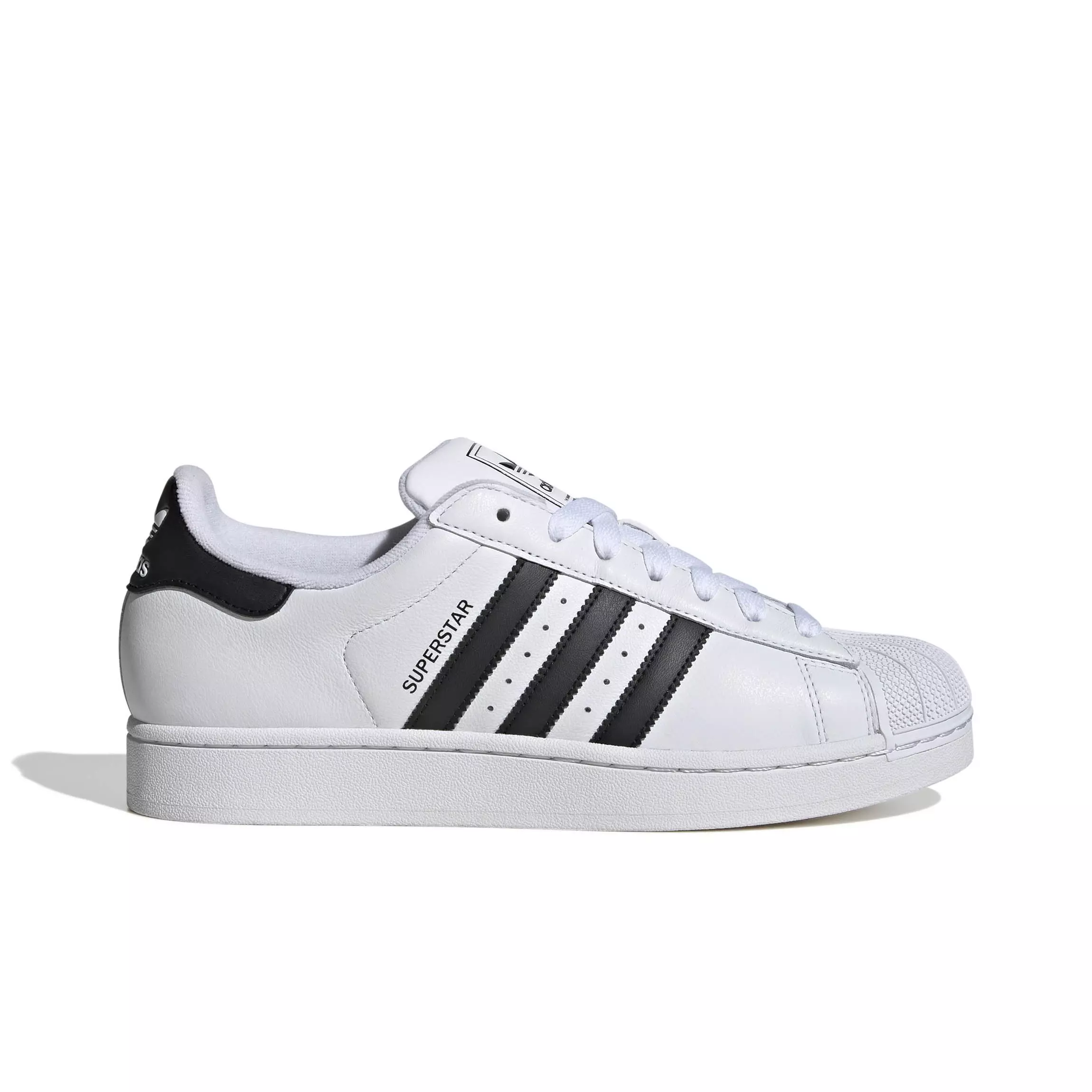 The adidas Originals Superstar II "Ftwr White/Core Black" Men's Shoe blends 50 years of sport and street style. A smooth leather upper and iconic rubber shell toe recall basketball courts and city streets.