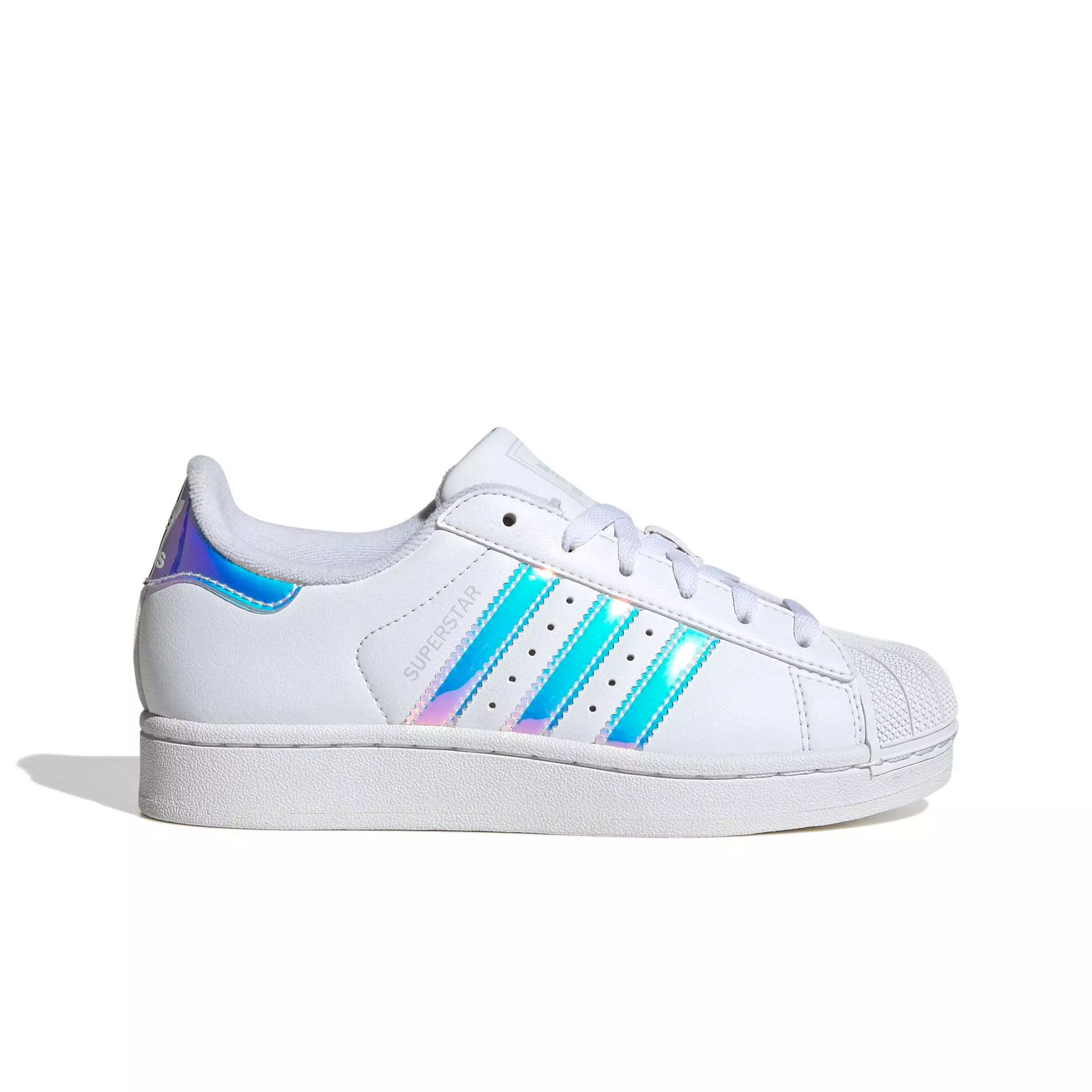 The adidas Originals Superstar II "Ftwr White/Halo Blue" Grade School Girls' Shoe are back, and they're better than ever. These iconic shoes, which dominated the streets throughout the 90s and 2000s, have returned with their original shape and details. The synthetic upper, added padding in the tongue and heel area, and the world-famous shell toe design make these shoes a must-have. Designed to keep kids’ feet comfortable, these shoes include a molded sockliner that provides cushioning and support. The serrated 3-Stripes, Superstar box logo on the tongue, and Trefoil logo on the heel tab add a touch of classic adidas style. The stripes and heel feature a shiny sparkle update with iridescent material, making these shoes stand out from the crowd. adidas has brought back the shoe that birthed and supported a generation of creatives and originals. Celebrate the impact of these shoes and make them a part of your kid’s wardrobe today.Features