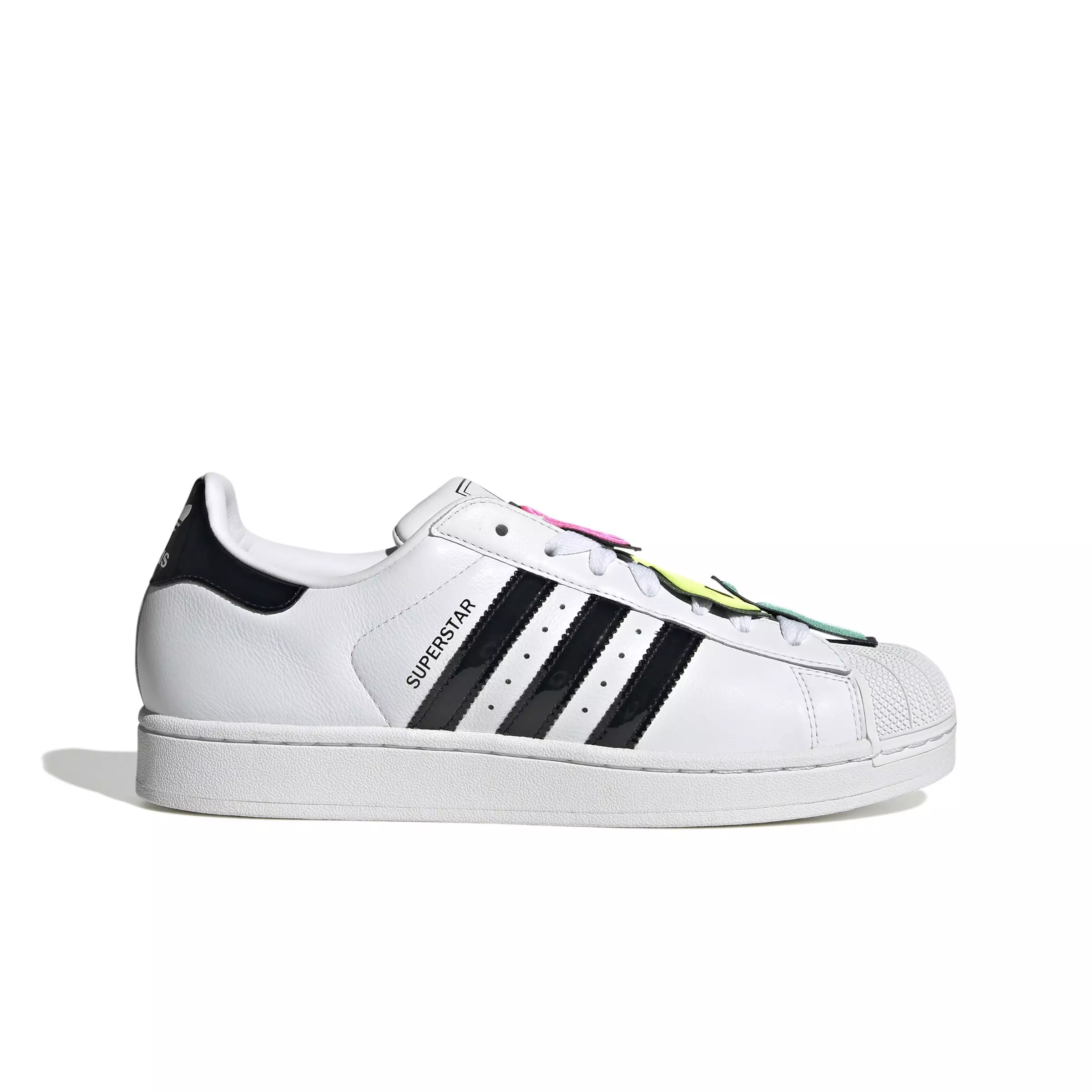 Fifty years on, adidas Originals Superstar II Jeremy Scott "Ftwr White/Core Black" Women's Shoe marks a milestone. This Pride 2025 collaboration with Jeremy Scott draws inspiration from ’90s art, sports and club culture.