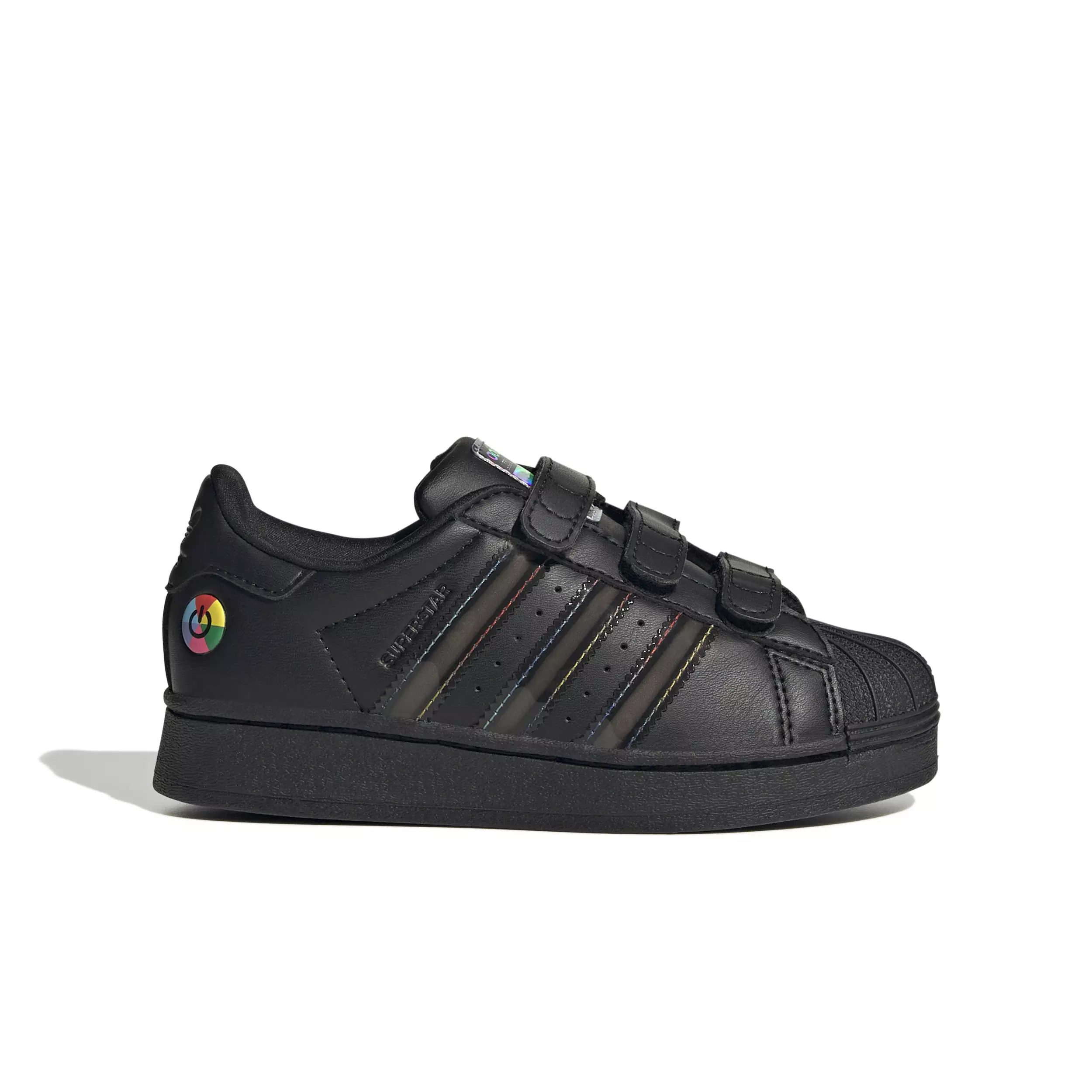 With every step you take, you'll light up the day in these adidas Originals Superstar LED Lights CC "Core Black" Preschool Boys' Shoe. Vivid 3-Stripes stand out on the upper, a splash of color that adds energy to any outfit and outing. Classic details like the shell toe and rubber cupsole stay true to the retro basketball shoes that inspired them. The best part? Hook-and-loop straps make these shoes a breeze to get on and off.Features