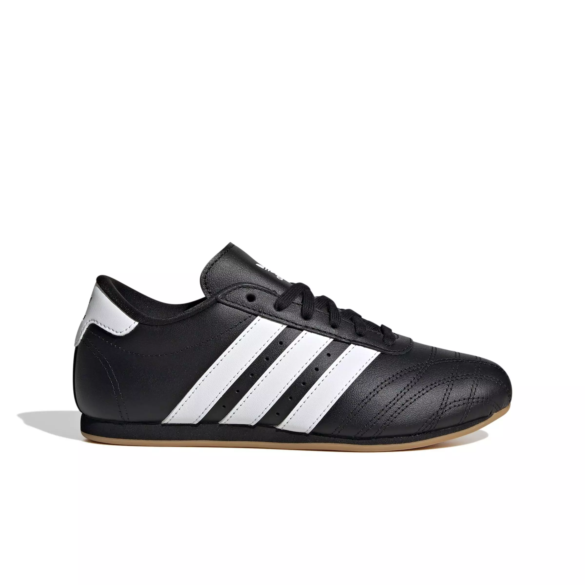 With a sleek, low profile design, these adidas Originals Taekwondo Lace "Core Black/Ftwr White/Gum 3" Grade School Girls' Shoe for juniors pay homage to the iconic Taekwondo shoe Prajna from the early 2000s. The smooth leather upper has a 3D quilting on the toe for subtle texture, and the thin rubber outsole keeps the look sleek and minimal.Features