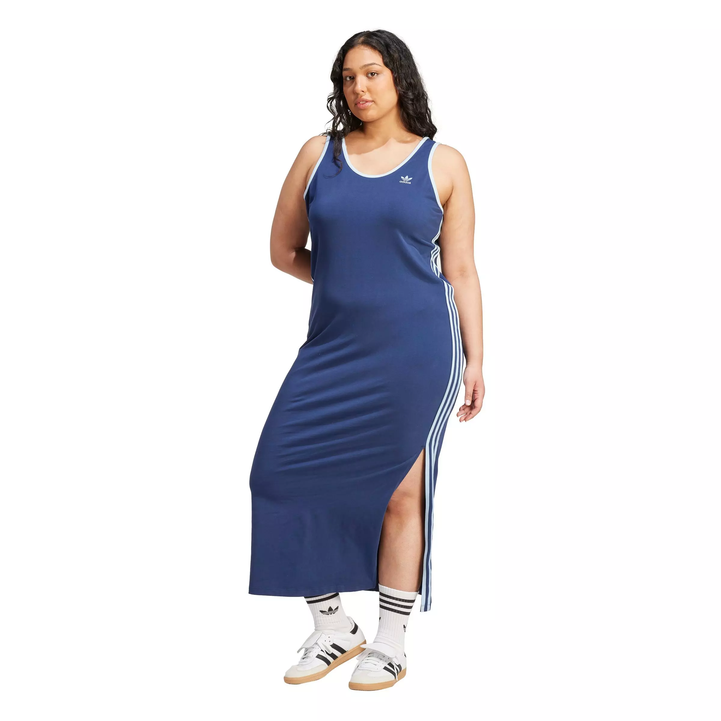 Made for sunny days and spontaneous plans, the classic sporty style of this plus size blue adidas Originals Women's 3-Stripes Adicolor Tank Maxi Dress moves seamlessly from coffee to cocktails. Made from soft cotton jersey fabric, it has added stretch designed to hug the body. The maxi length adds a touch of elegance to the iconic 3-Stripes look, while a small Trefoil logo signs off the style.Features