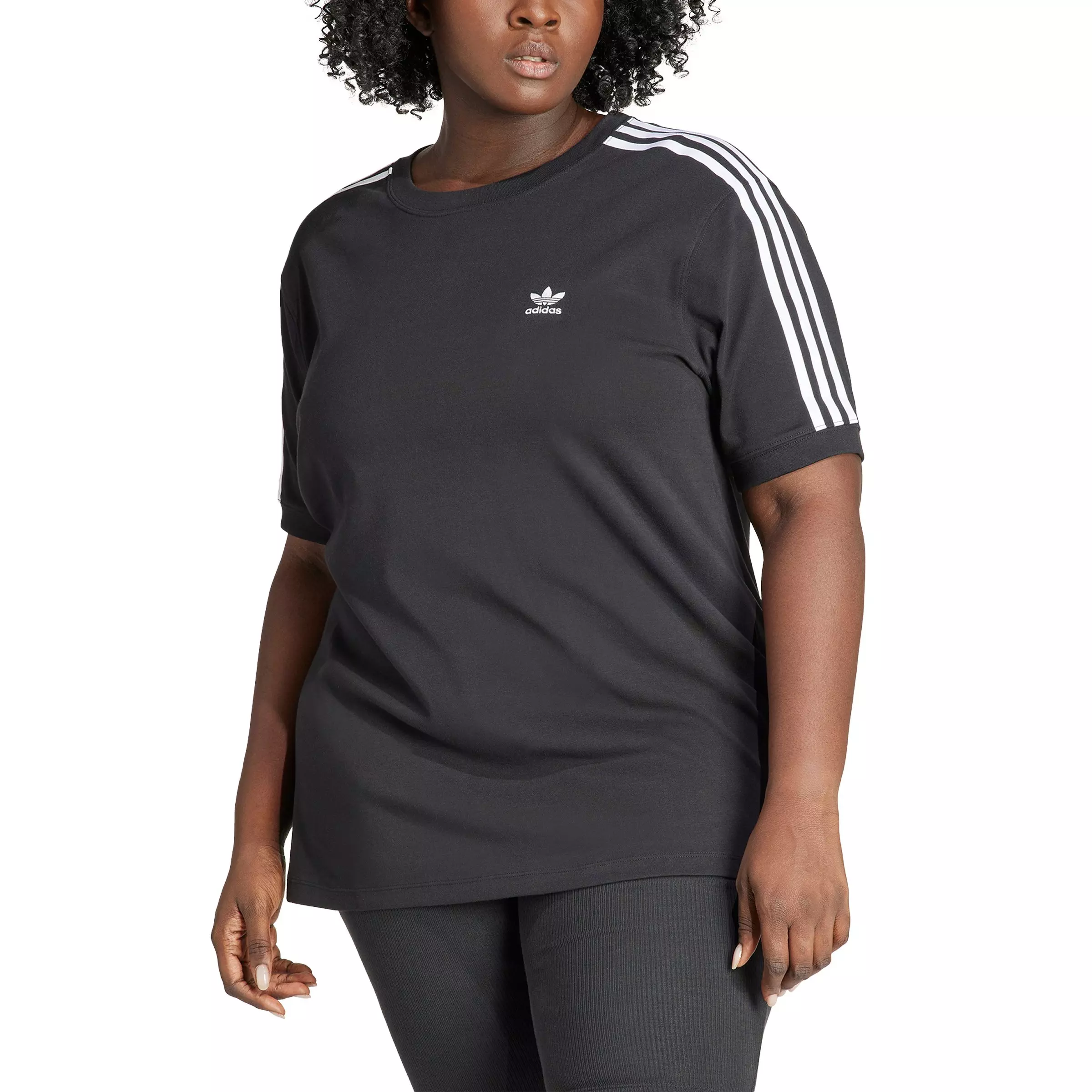 adidas Originals Women's 3-Stripes Adicolor Tee -BlackMade to move, this soft essential plus size black adidas Originals Women's 3-Stripes Adicolor Tee is all about expressing your passion for sport. Inspired by adidas' archives but designed for today, it celebrates our heritage of originality. Ribbing creates a classic shape while signature 3-Stripes down the sleeves nod to the legacy of athletes and creators who have shaped adidas. Layer it up or wear it solo—this tee is ready for whatever you have planned. The cotton in this product has been sourced through Better Cotton. Better Cotton is sourced via a chain of custody model called mass balance. This means that Better Cotton is not physically traceable to end products.Find out more here: https://bettercotton.org/who-we-are/our-logo/