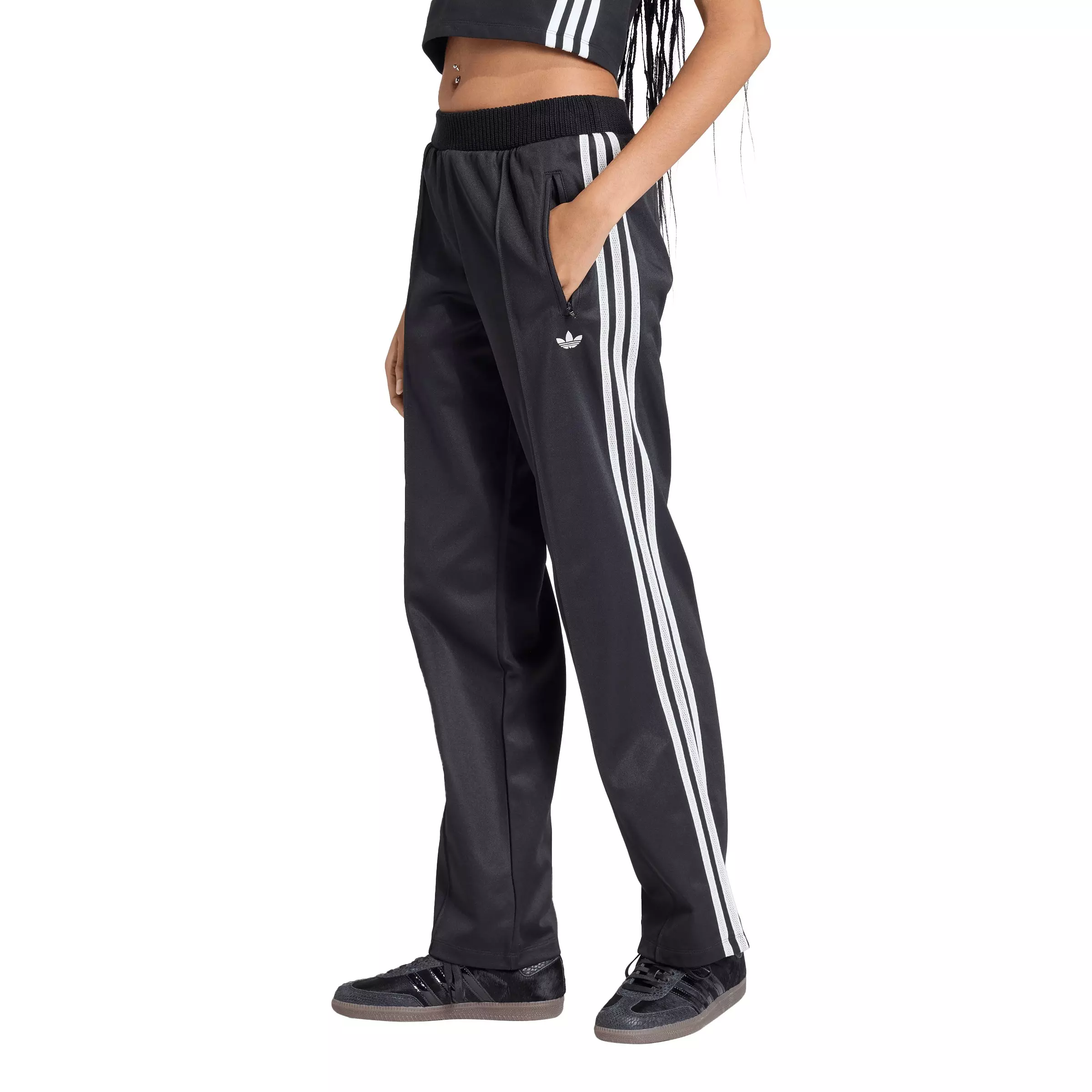 Classic meets contemporary with the adidas Originals Women's Firebird Knitted Crochet Detail Track Pants - Black. These track suit pants blend adidas heritage and modern flair, plus the crochet detailing adds a distinctive touch. Crafted with a regular fit, these adidas tracksuit bottoms offer ease of movement, making them great for a range of activities. Fusing sport and style, wearing them will speak volumes about your fashion-forward mindset. Make a statement with the knitted crochet details, offering an iteration on popular silhouettes. Upgrade your everyday look by adding a hint of elegance, whether you're heading to a casual meet-up or a relaxed day out.