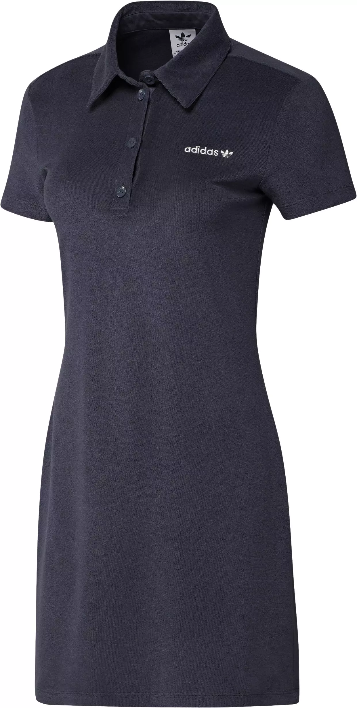 This navy adidas Originals Women's Towel Dress is made from soft fabric that feels so comfortable, you'll want to take it with you on your next tropical getaway. It's cut for a slim fit, with a polo collar for a preppy touch. Whether you're lounging by the pool or headed out for sunset drinks, this dress will have you feeling good.Features