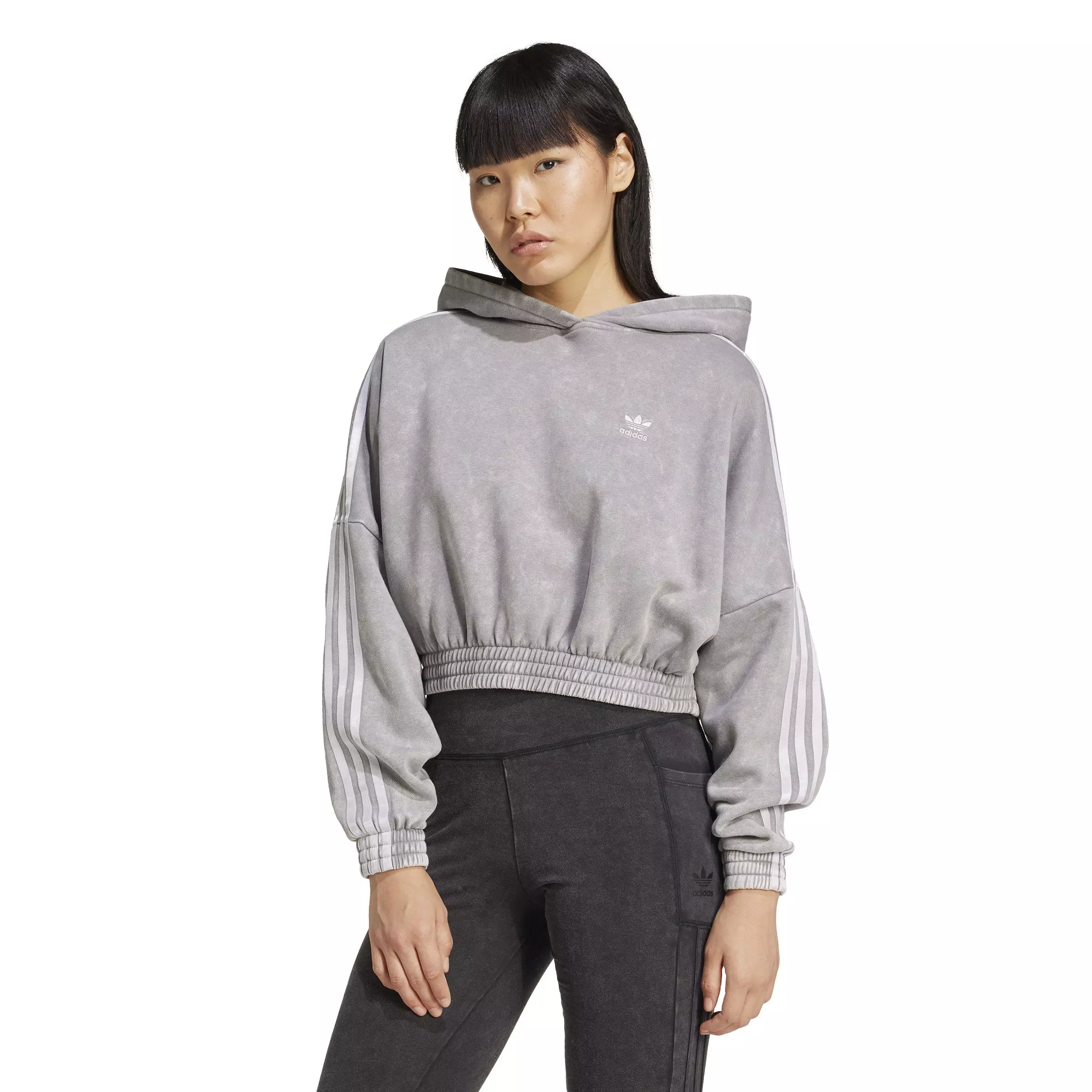 Slip into comfort that's perfectly imperfect. This adidas Originals Women's Washed-Out Crop Oversized Zip Hoodie-Grey has been acid washed for a worn, lived-in look and feel from the very first wear. The loose crop shape creates an effortless vibe while soft fleece embraces you in coziness.Features