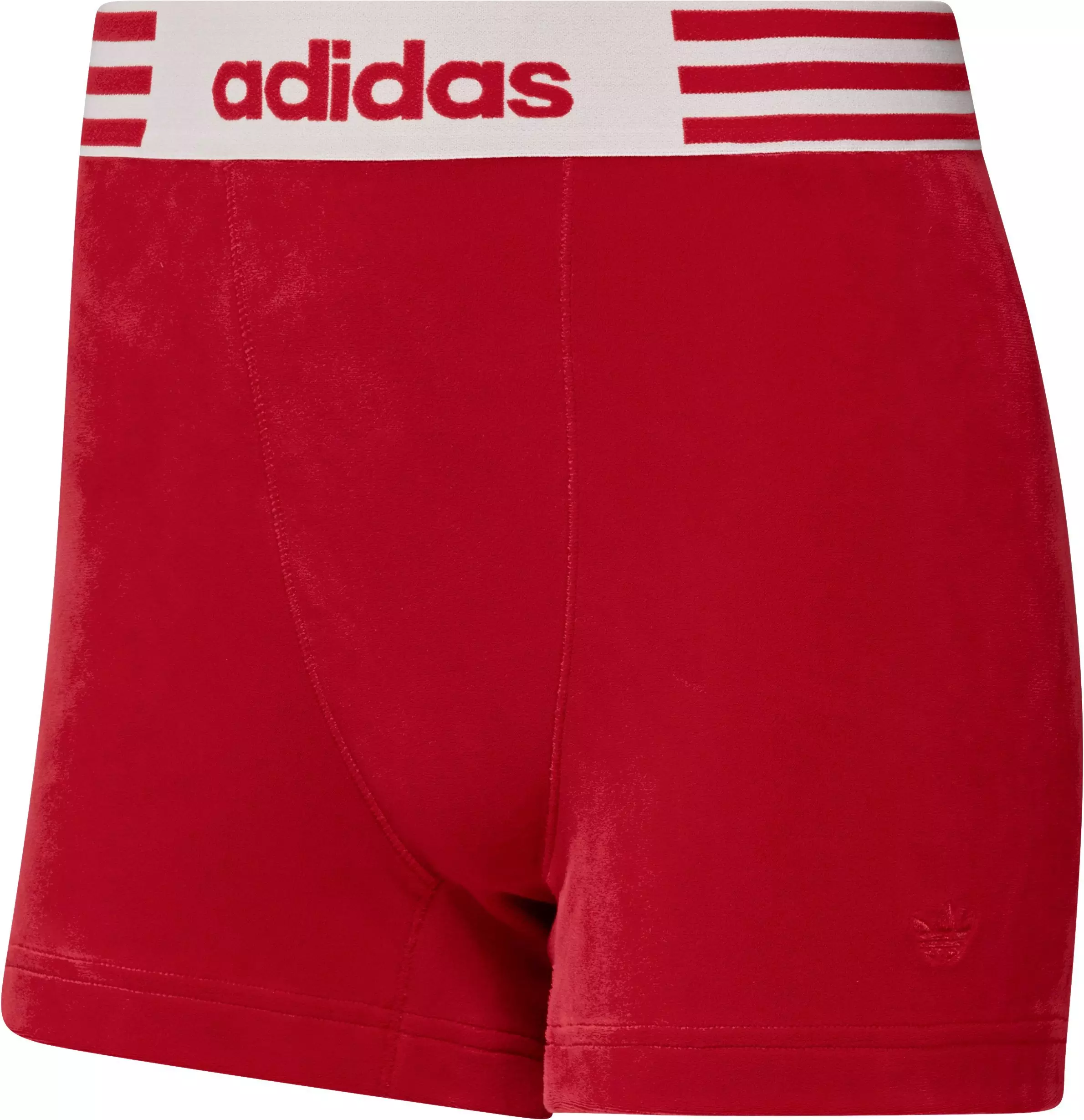 Keep your look cozy and confident in the adidas Originals Women's Winterized Booty Shorts-Red. Plush velvet with a hint of stretch hugs your shape while a high-rise waist flatters. The short cut shows leg, pairing effortlessly with layers from chilly errands to nights out.