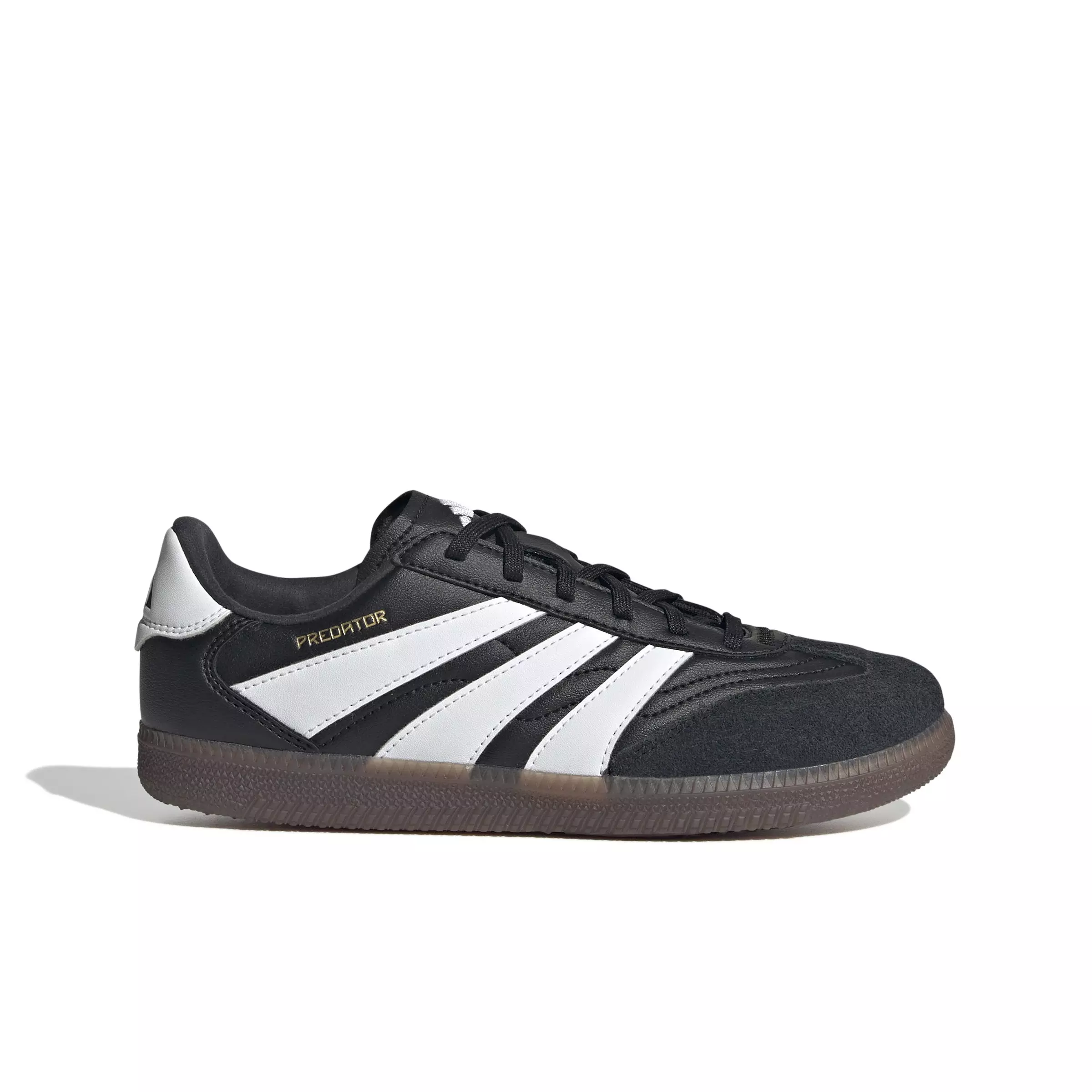 Step onto indoor courts with confidence in the adidas Predator Freestyle "Core Black/Ftwr White/Gold Metallic" Grade School Kids' Soccer Shoe, built to turn chances into goals. A ventilating mesh-and-suede upper keeps growing feet cool and supported through quick cuts and nonstop play.
