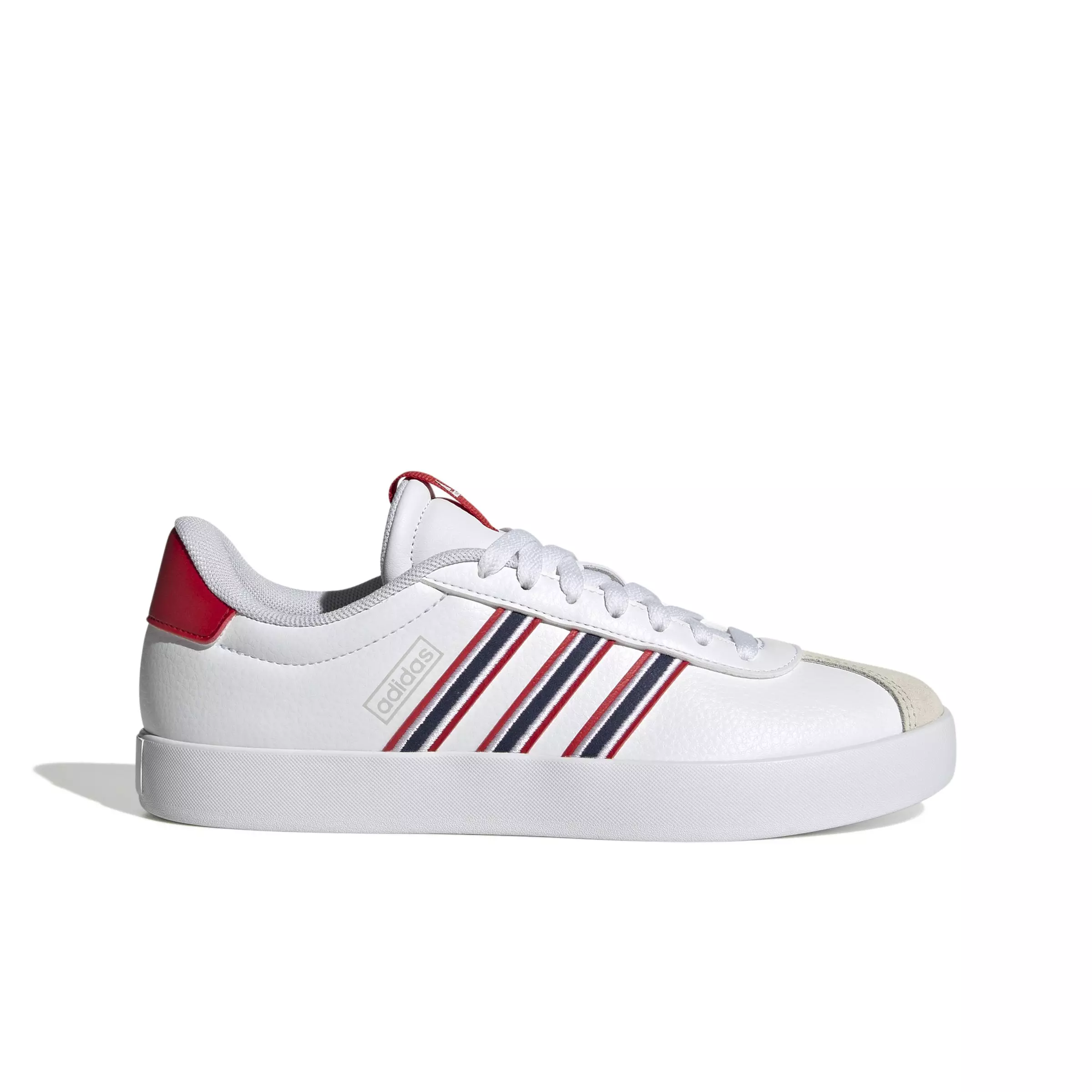 Experience the fusion of classic and contemporary with the adidas VL Court 3.0 "Ftwr White/Team Navy Blue 2/Better Scarlet" Women's Skateboard Shoe. These low-profile, lace-up shoes are perfect for skateboarding or casual streetwear. Crafted from sustainable synthetic leather and suede, they offer a clean and timeless look with a modern twist. The traditional rubber cupsole ensures reliable traction and durability, while the T-Toe design adds to its versatility. Made in part with recycled materials, these shoes not only look good but also contribute to a more sustainable future.Features