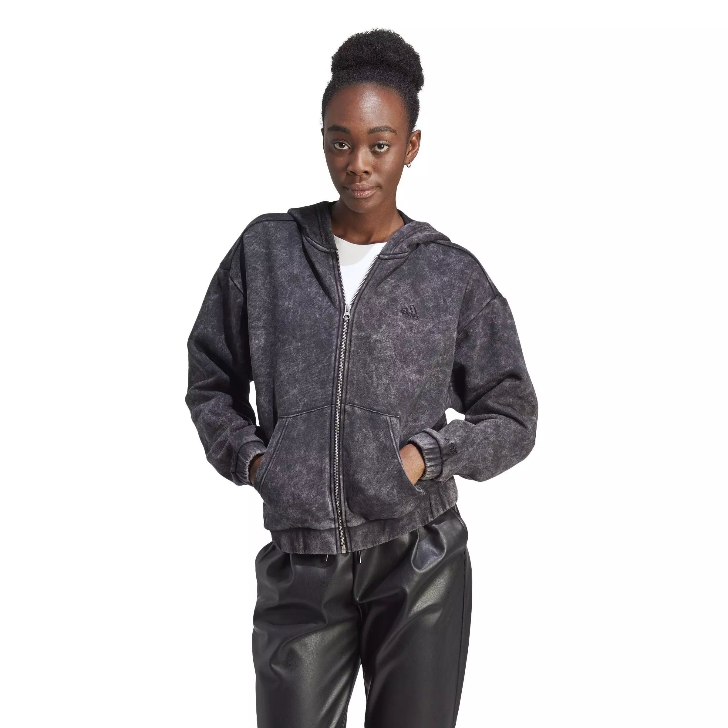 adidas Women's ALL SZN Fleece Washed Full-Zip Hoodie-Black