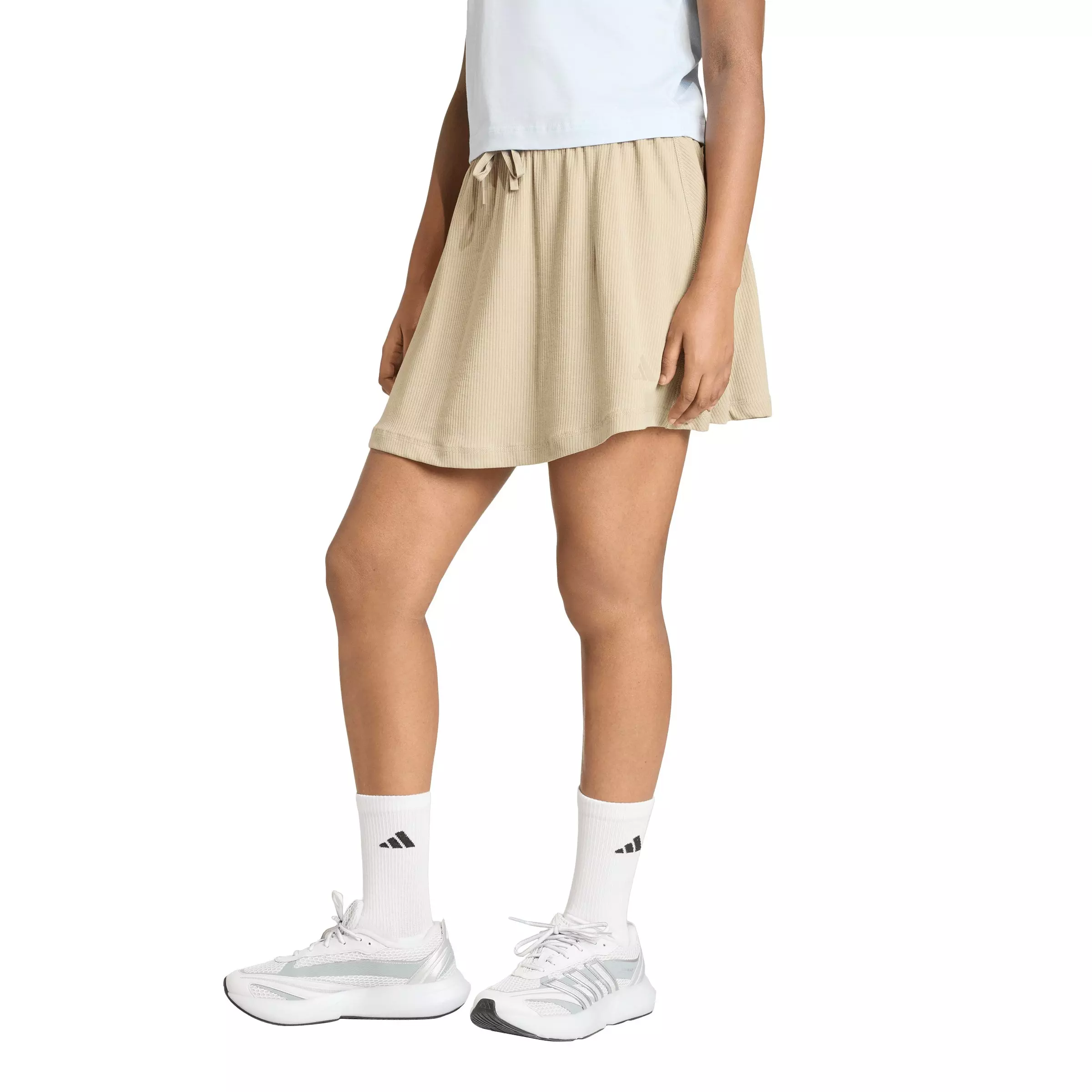 The adidas Women's ALL SZN Rib Skirt - Khaki is a go-to for effortless style and comfort. Designed for those who value both fashion and ease, this skirt is great for a casual outing or post-workout relaxation. The loose fit, stretchy fabric and high-rise waist offer a flattering silhouette that moves with you, while the drawcord closure gives you a comfortable and customizable fit. Whether you're heading to a yoga class, meeting friends for coffee or simply lounging at home, this adidas skirt is a comfortable and stylish addition to your wardrobe.Features