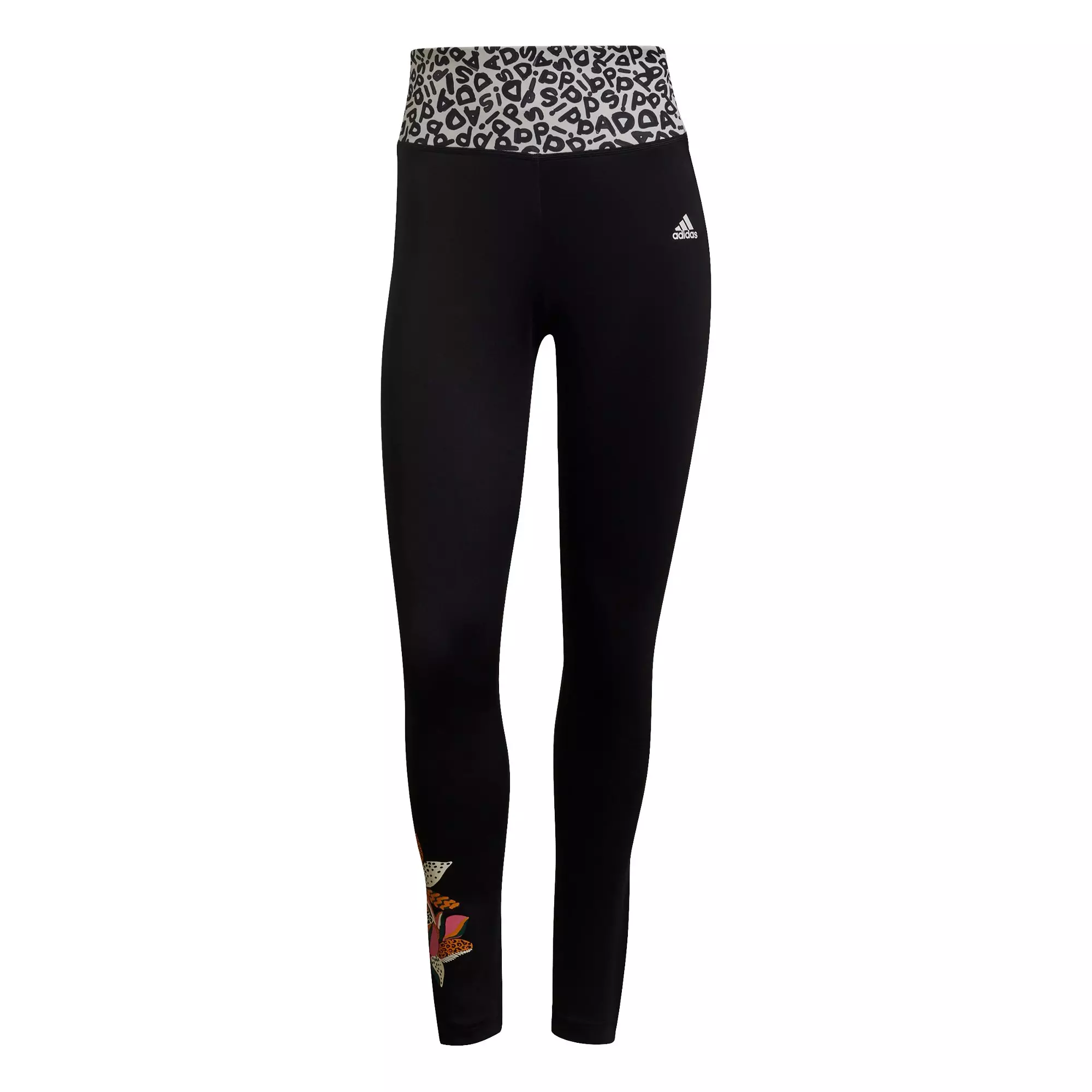 *This model is 5' 9" and wears a size S. Their chest measures 35" and the waist 25".Elevate your style in the gym, on the road or just during errands. These adidas Women's "Black" FARM Rio Feelbrilliant AEROREADY High-Rise Leggings are a collaboration with FARM Rio and flash a wildflower-inspired graphic on the leg and a bold print on the high-rise waist. They feature AEROREADY to manage moisture as you're working up a sweat.