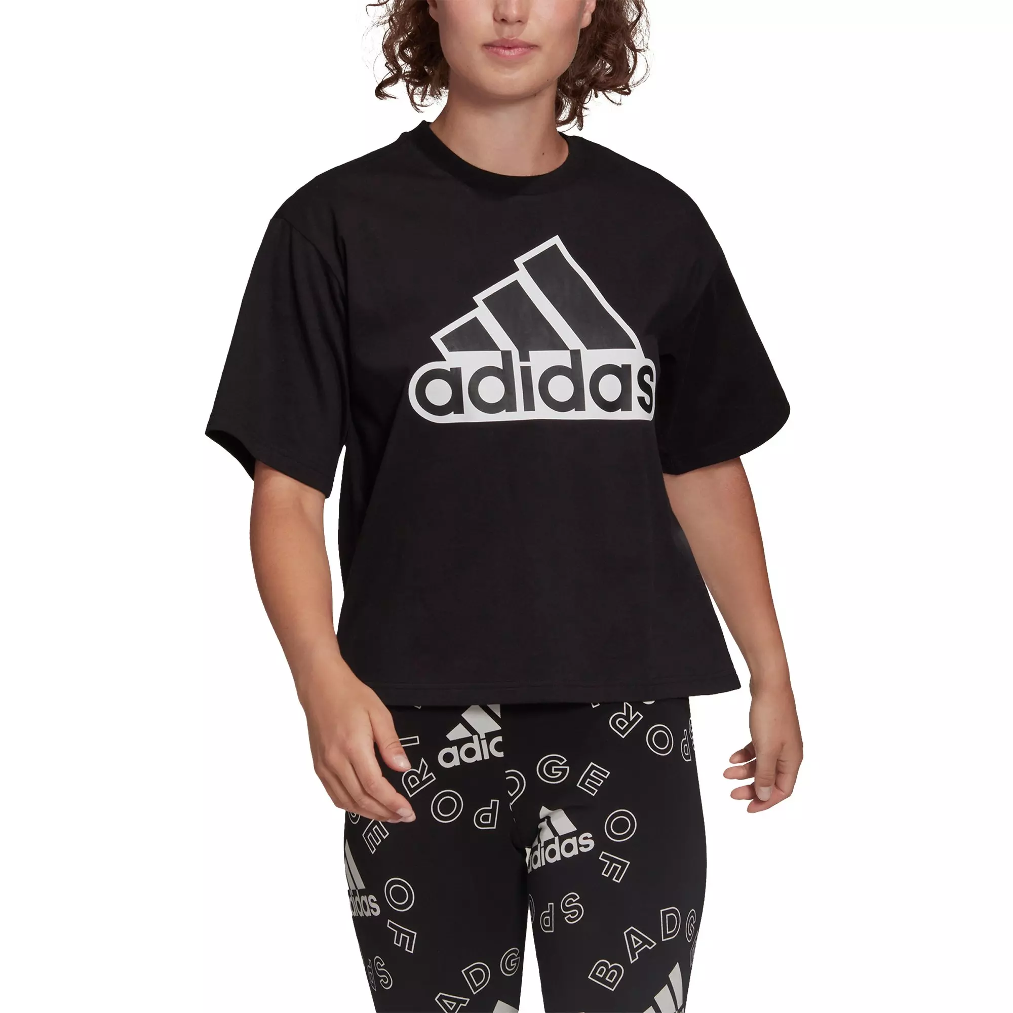 T-shirts are already known for comfort, but this adidas Women's Essentials Logo Boxy Tee - Black takes things up a couple of notches. Loose fit and cropped, it drapes you in the comfort of single jersey cotton fabric. Wear it to brunch, or pop it on after the gym. Actually, just go ahead and spend the whole day in it. Our cotton products support more sustainable cotton farming.