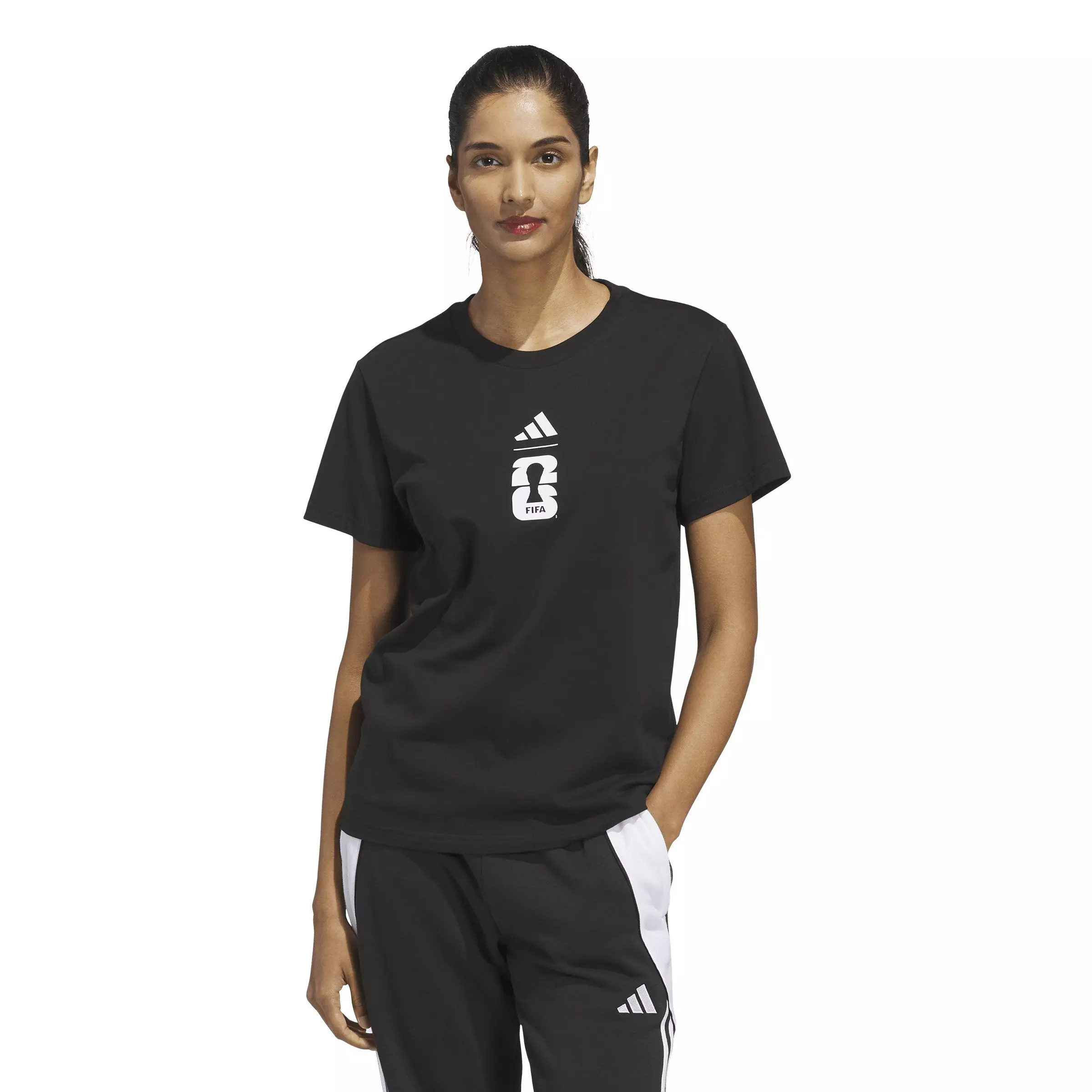 Celebrate the spirit of the World Cup with the adidas Women's FIFA World Cup 26 Match Ball Graphic T-Shirt - Black. This t-shirt is designed for football fans who want to showcase their passion for the game in style. Crafted from single jersey, it offers a soft and comfortable feel, making it a go-to for everyday wear or cheering on your favorite team. This T-shirt features a bold graphic inspired by the iconic tournament, making it a standout piece in your wardrobe. Whether you're watching the game or enjoying a casual day out, this tee provides a regular fit for comfort and ease of movement. Embrace the excitement of the World Cup and let your love for football shine through with this adidas t-shirt. It's more than just a t-shirt; it's a statement of your dedication to the sport and your connection to the global football community.Features