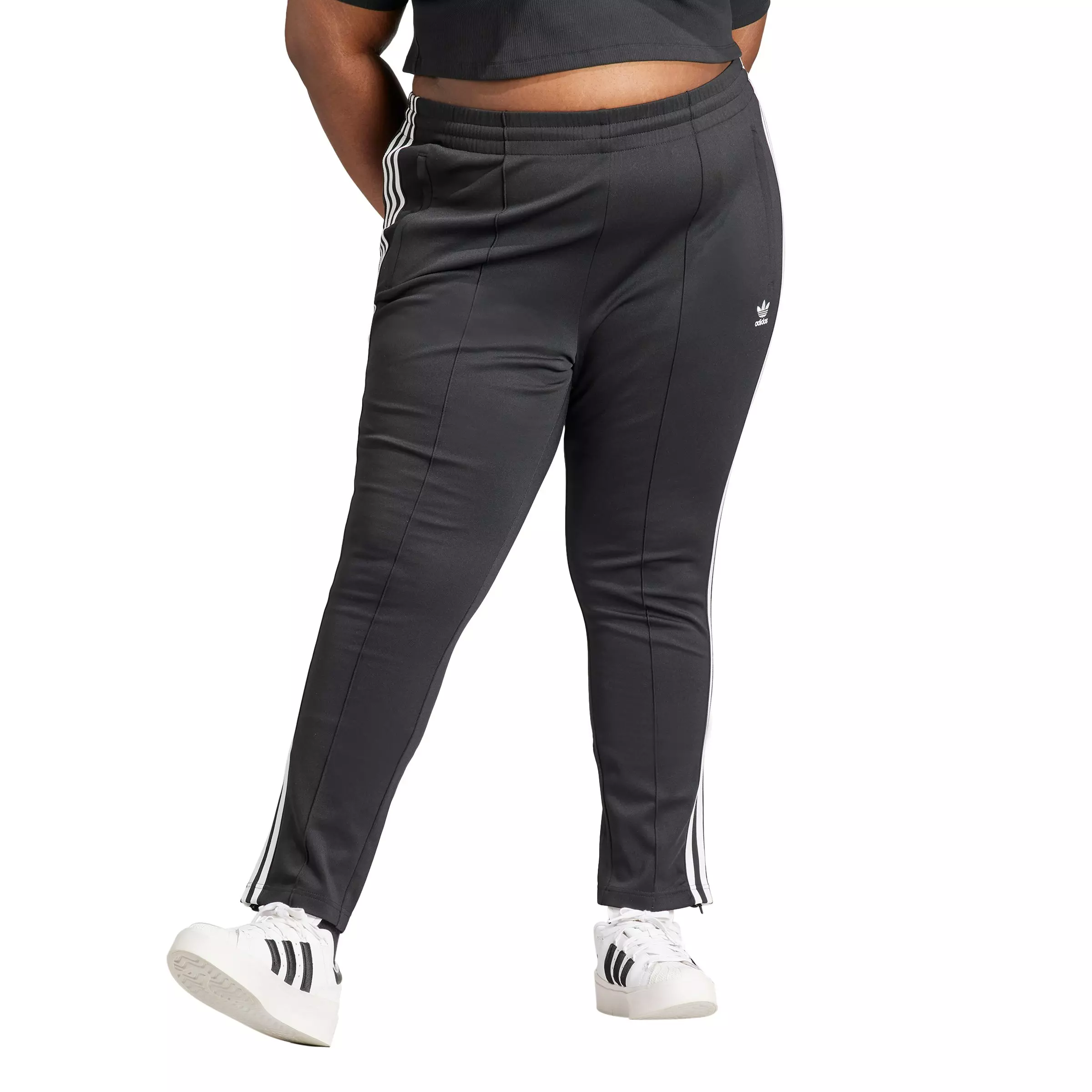 adidas Women's Originals Adicolor Track SST Tracksuit Bottoms - BlackMake yourself comfortable in these adidas Women's Originals Adicolor Track SST Tracksuit Bottoms - Black. The slim fit keeps your lines clean, while stretchy doubleknit gives you freedom to move. Tall 3-Stripes down the legs call on that sporty heritage. Complete the look with a coordinating track jacket and a contrast crop top, and you're all set for your day — no matter what you have planned. A minimum of 70% of this product is a blend of recycled and renewable materials.