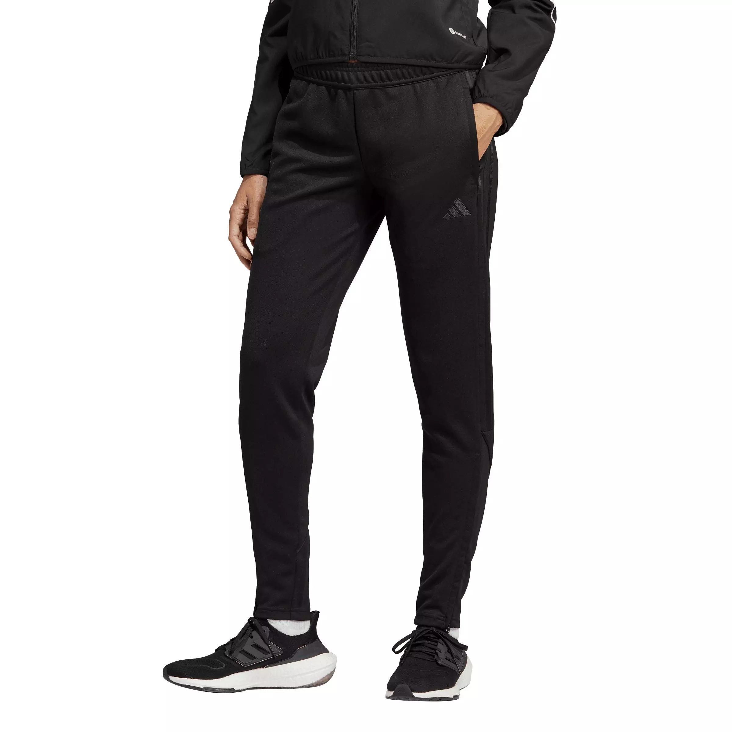Stay focused from warm-up to cool-down in the adidas Women’s Tiro 23 League Tracksuit Pants – Black. Moisture-managing AEROREADY helps keep you dry, while a tapered silhouette with ankle zips makes changes quick. Lightweight fabric moves with you through drills and recovery.