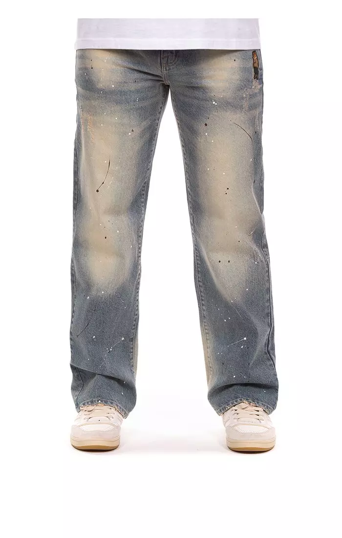 AKOO Men's Artisan Relaxed Fit Grey Wash Denim Jeans