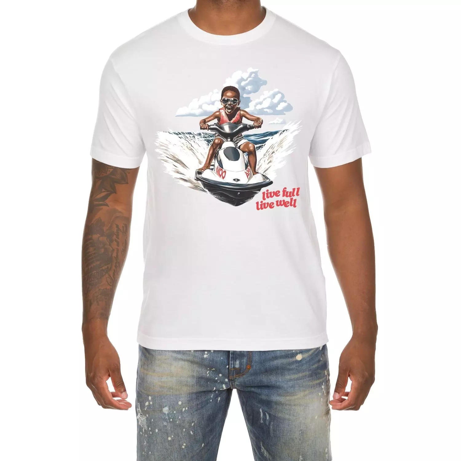 Show loyalty to the royalty within while enjoying the fruits of your labor in the AKOO Men's Jet Ski Joy Tee - White, a premium cotton tee with a stylish screen printed graphic to serve as your crowning glory.Features
