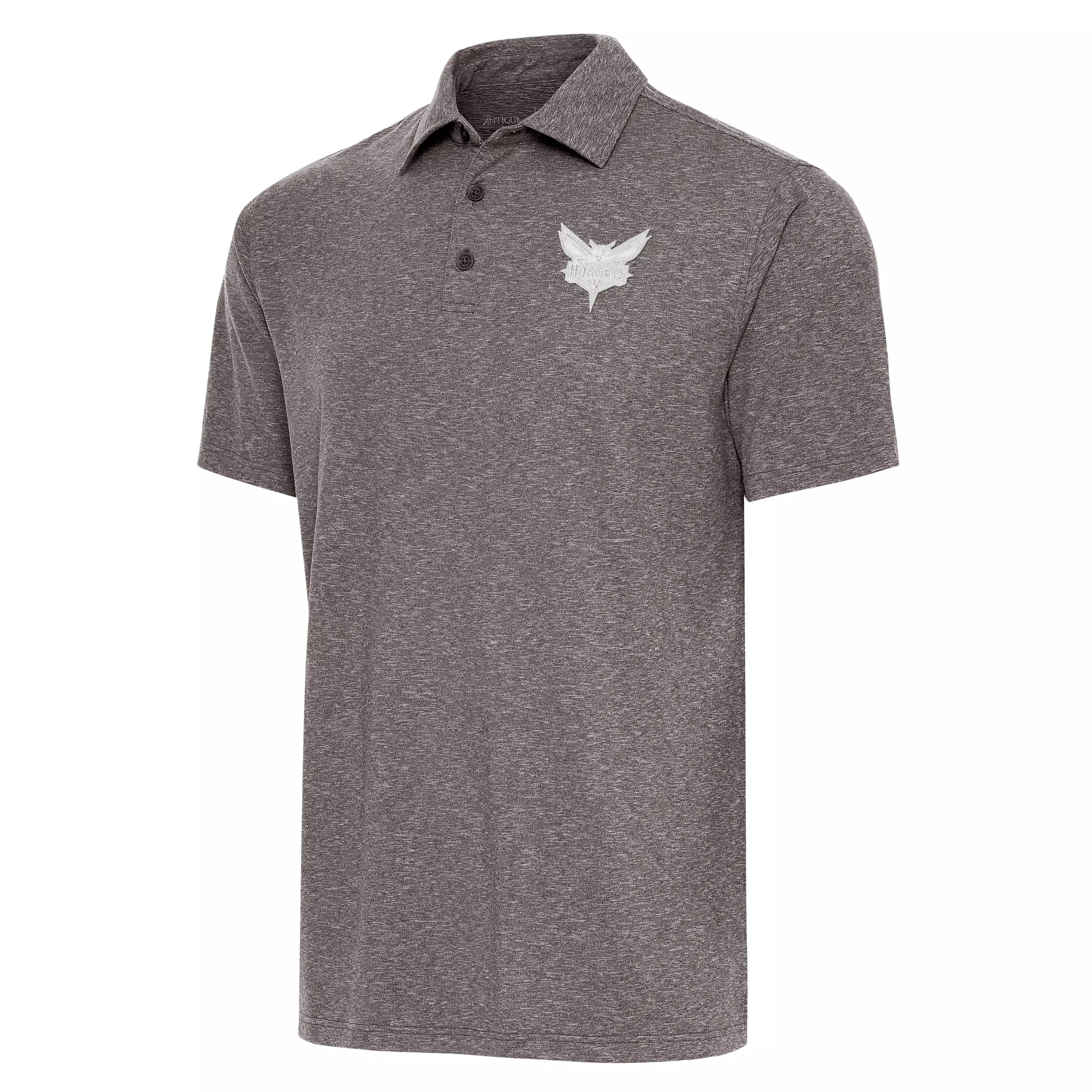 Dive into unparalleled softness and experience comfort unlike ever before. The Antigua Men's Charlotte Hornets Par 3 Polo-Brown, crafted from our signature heather poly-stretch fabric, offers a lived-in feel with exceptional breathability. Move freely on and off the course thanks to our standard comfort fit sleeves that hit above the elbow and the four-way stretch technology. Whether you're mastering your swing or relaxing afterward, this polo will keep you comfortable. Clean lines with a self-fabric collar and a modern three-button placket add a touch of style to this versatile top.Features