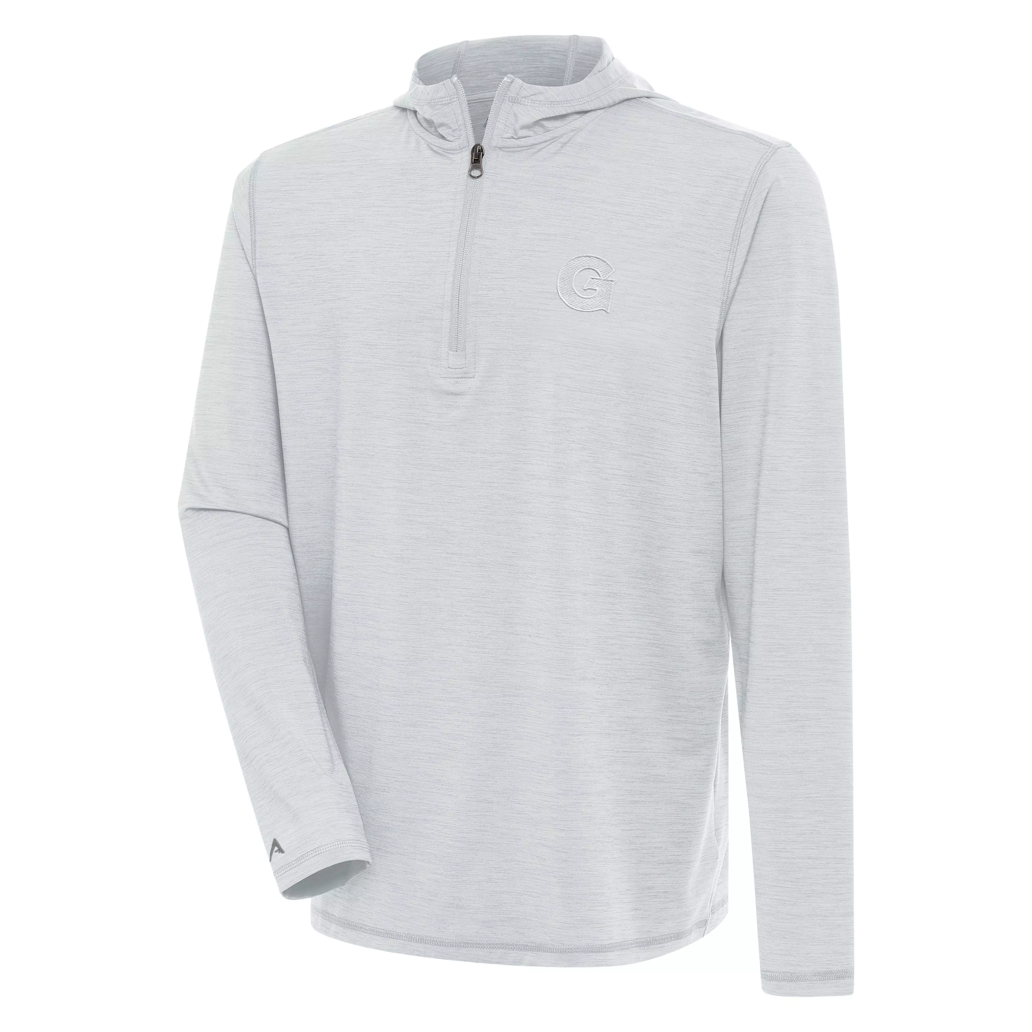 Elevate your everyday wardrobe with our updated take on the Antigua Men's Georgetown Hoyas Tidy Quarter Zip Pullover-Light Grey. This matte heather style now boasts an on-trend hood for a more modern appeal. The three-panel hood is perfectly designed to stay put, whether it's during a high-energy workout or cheering on your favorite team. Crafted from premium fabric for exceptional comfort, this lightweight design will keep you comfortable throughout the day.Features