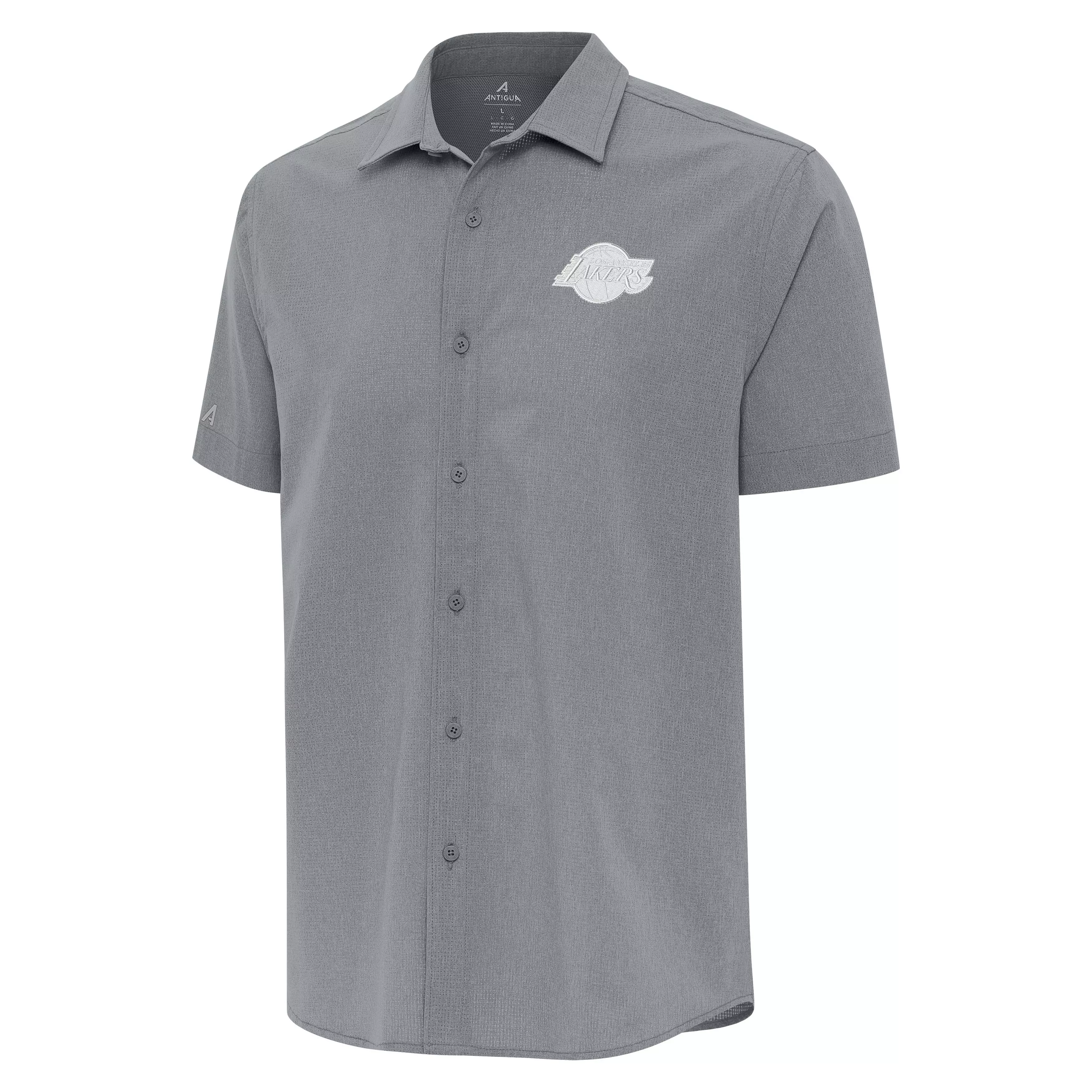 Antigua Men's Los Angeles Lakers Activate Woven Shirt-Light Grey