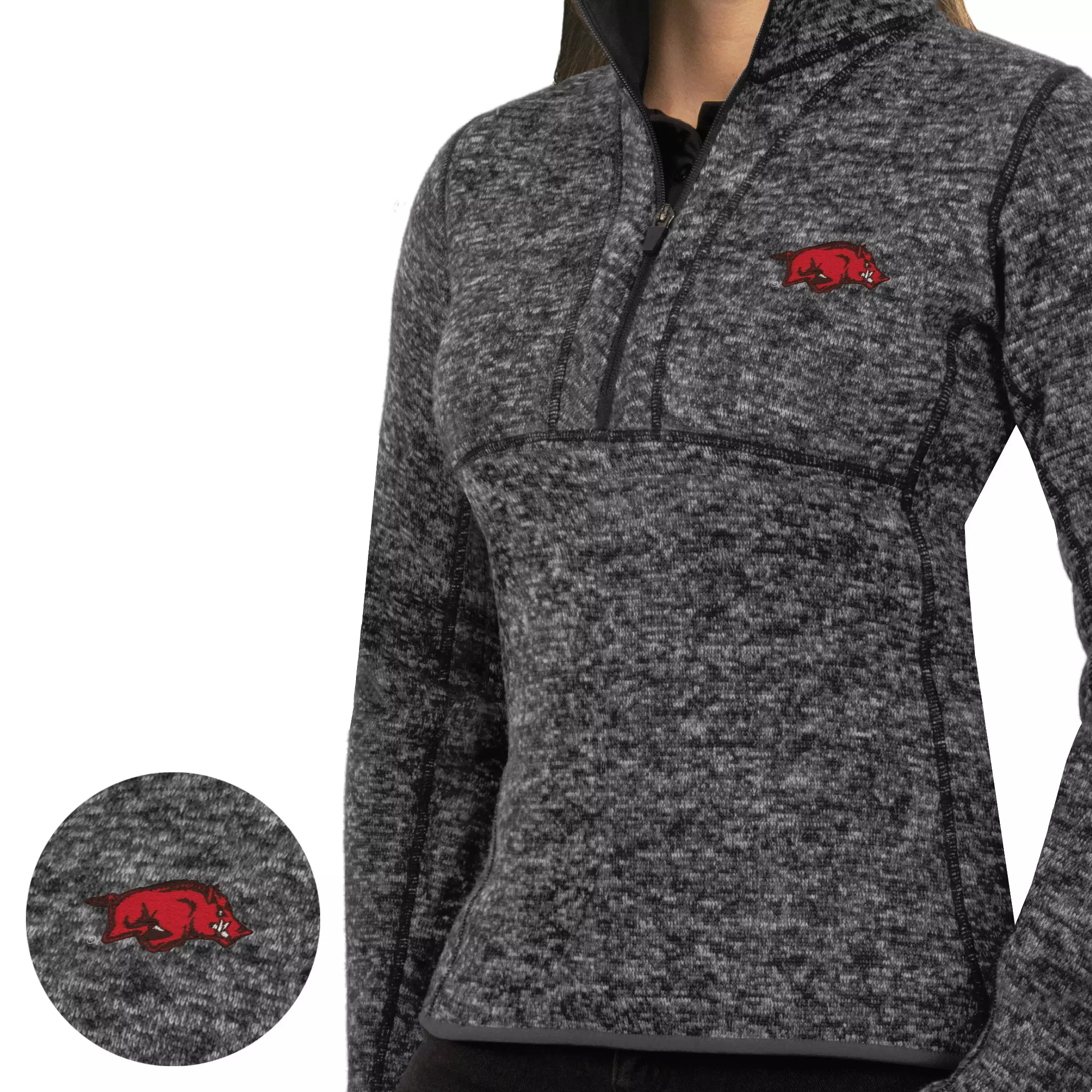 Sport the most team spirit at the game with this Arkansas Razorbacks Fortune Half Zip Pullover Jacket from Antigua. Its stunning colors and team graphics make it a must-have for any sports fan.