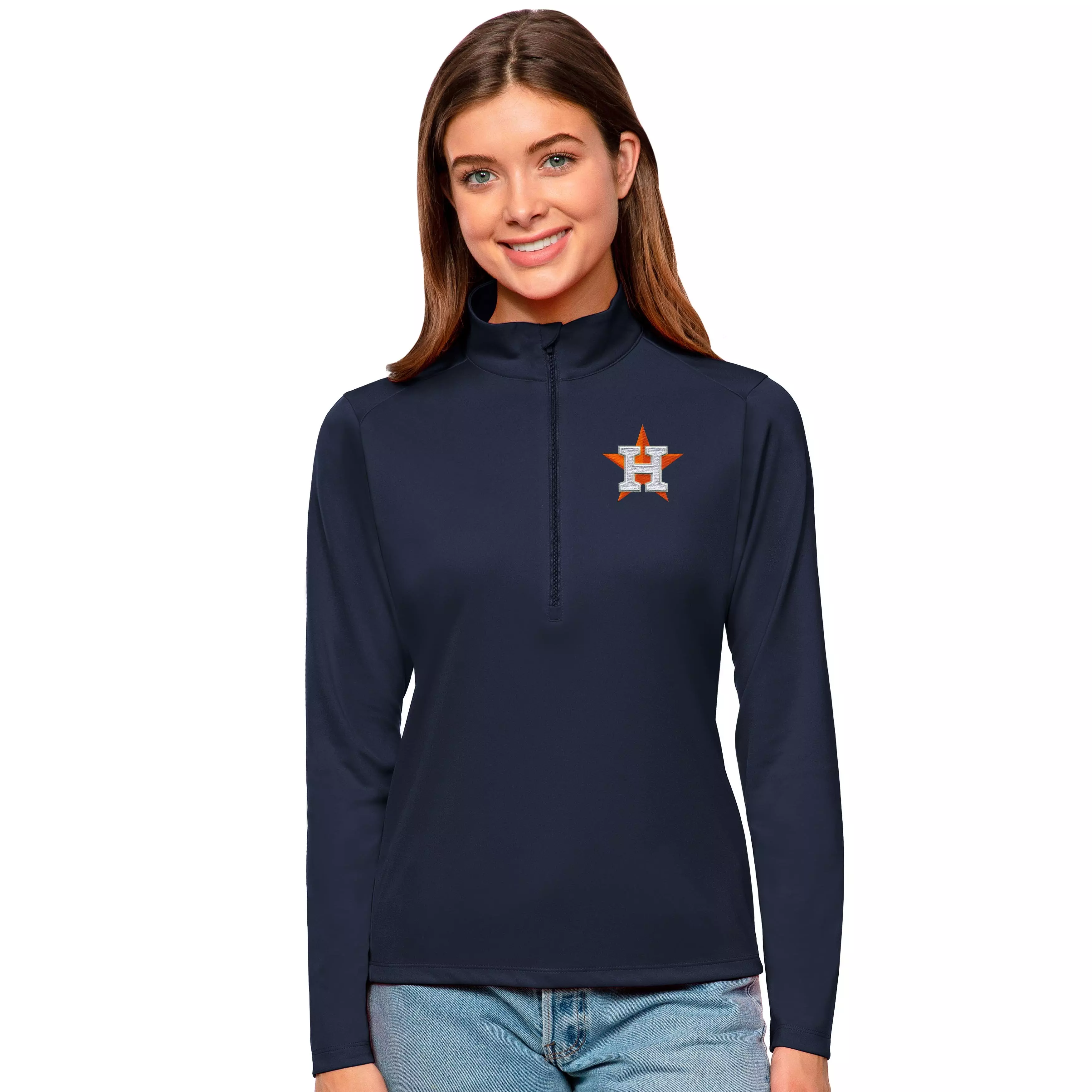 • Antigua Women's Houston Astros Tribute Quarter-Zip Pullover Jacket - NAVY