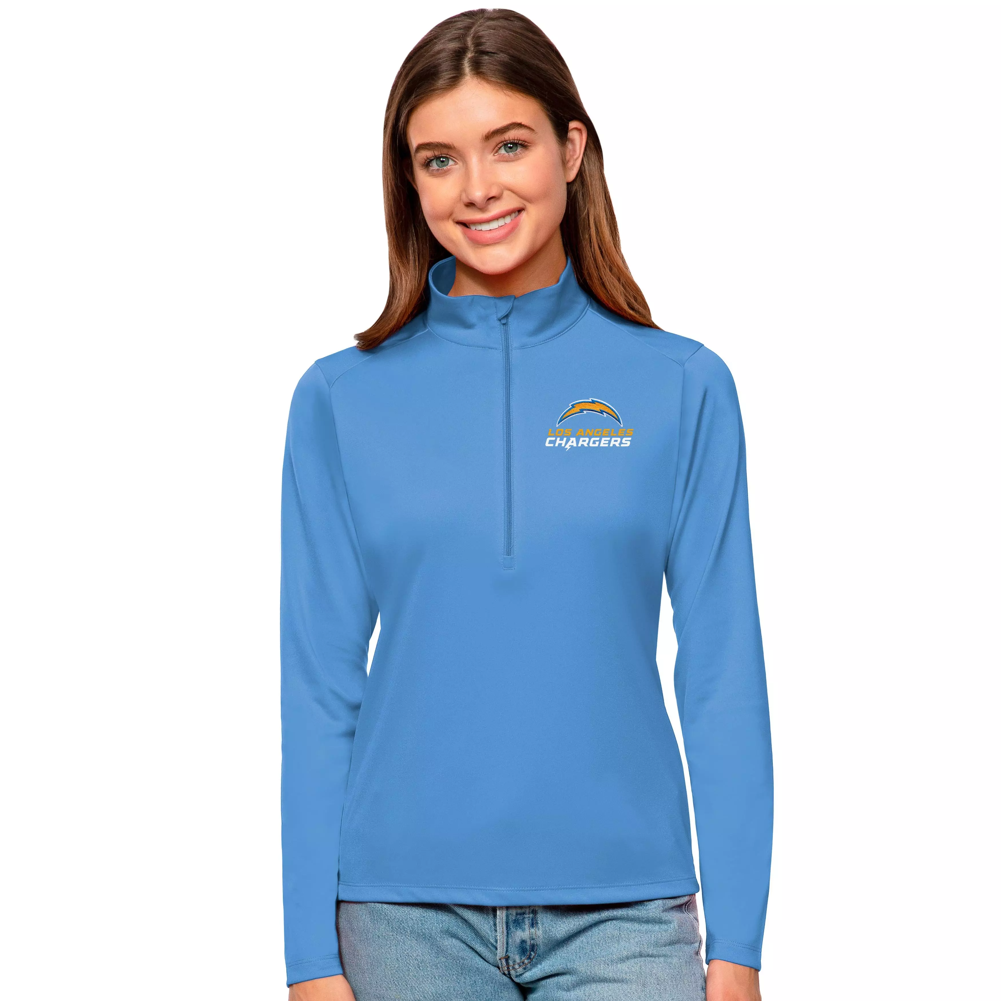 https://www.hibbett.com/antigua-womens-los-angeles-chargers-tribute-quarter-zip-pullover-jacket/2955F.htmlAntigua Women's Los Angeles Chargers Tribute Quarter-Zip Pullover Jacket