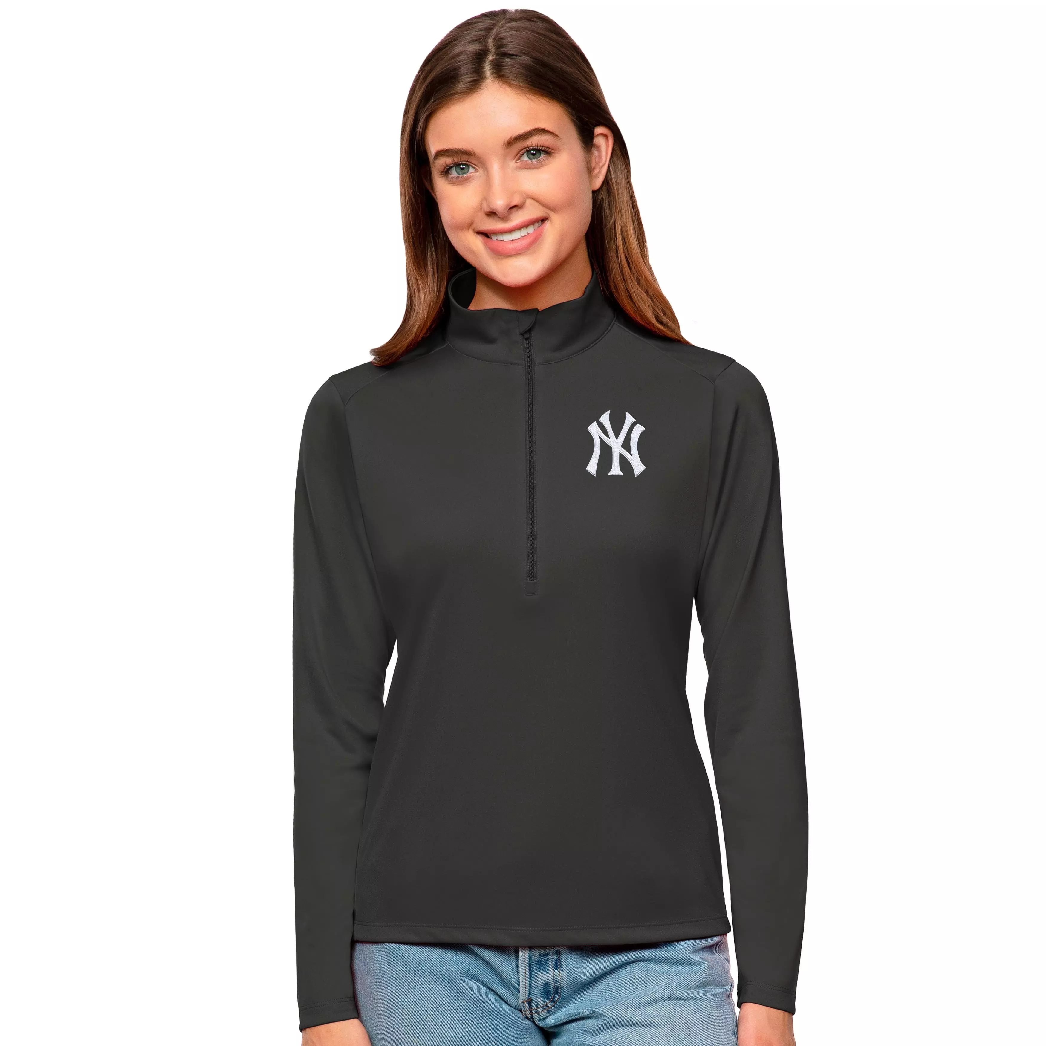 • Antigua Women's New York Yankees Tribute Quarter-Zip Pullover Jacket - SMOKE