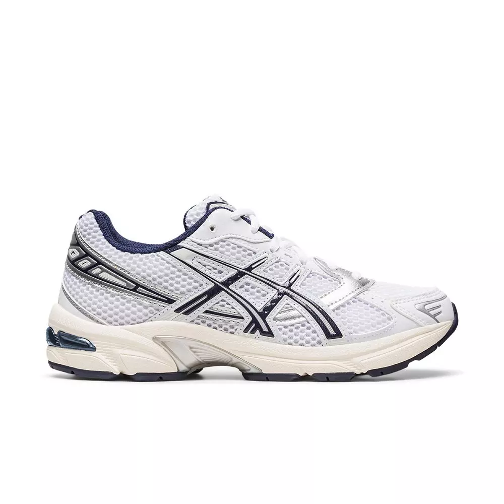 The ASICS GEL-1130 "White/Midnight" Women's Shoe honors the ninth GEL-1000™ series. This stability running shoe from 2008 delivers solid support wherever you go. This retro runner blends vintage style with distinct modern details on every street.