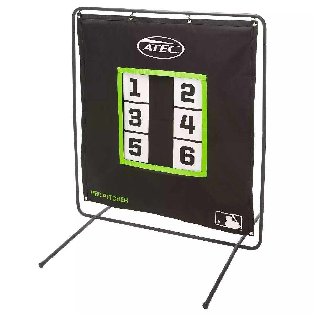 ATEC's Pro Pitcher's Practice Screen is ideal for team practice and backyard use. It features a built-in ball collection pocket for all pitches that hit target, not just strikes. A high-visibility target offers six zones within the "strike" target for further accuracy. A heavy-duty tarpaulin is double-stitched and seamed to ensure long life and doubles as a backstop for hitters, helping with strike zone discipline. It also features ATEC's patented drop-pocket ball collection while two steel shock-corded support rods are included with each screen to ensure proper shape and support. The screen measures 52 by 60 inches with a 15- by 19-inch training target. The stand is made from 1-1/4" round steel tube and features a rugged powder coat finish. This screen sets up quickly so you don't lose any practice time.Features