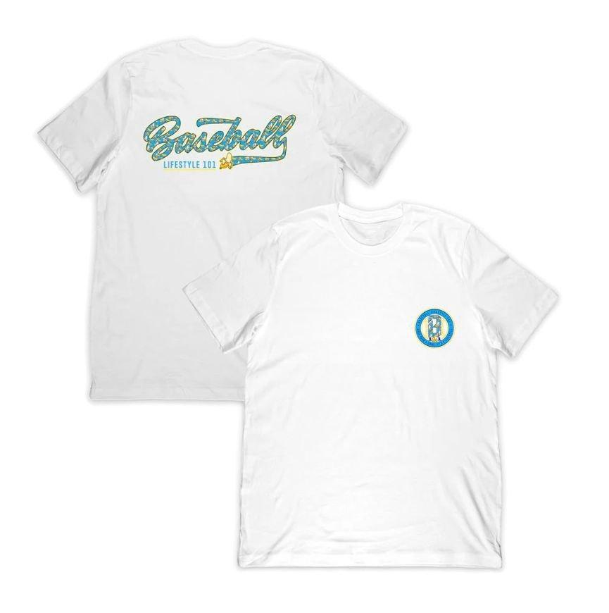 Baseball Lifestyle 101 Big Boys' Banana Tee brings a bold style with blue Baseball Lifestyle 101 text across the chest. Tiny yellow bananas scatter through the letters, adding a tropical touch.Soft cotton blend ensures all-day comfort. A classic crew neck and relaxed fit suit active days. Machine wash cold and tumble dry low. The vibrant blue print resists fading after repeated washes.
