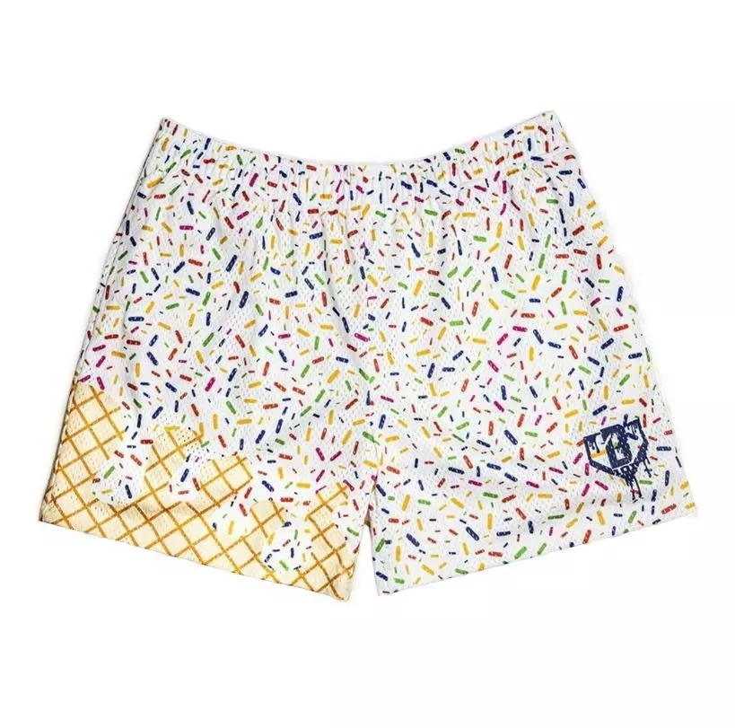 Baseball Lifestyle 101 Big Boys' Vanilla Ice Cream Shorts showcase a vibrant vanilla ice cream motif that captures summer energy. Breathable mesh fabric combines high-quality materials with eye-catching comfort and delivers cooling during play, even at high intensity.