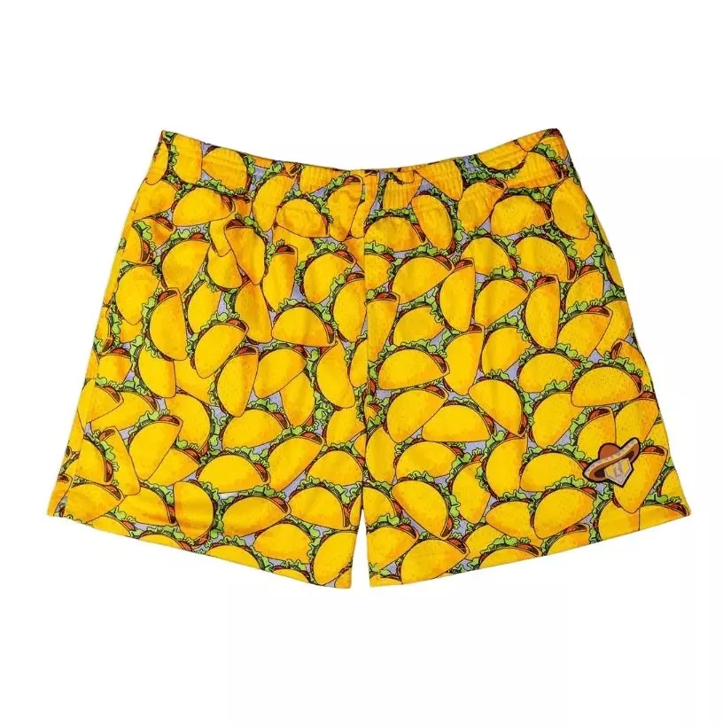 Spice up game day in the Baseball Lifestyle 101 Men's Taco Shorts, featuring a lively allover taco print and the Baseball Lifestyle logo at the left leg. Lightweight, breathable mesh keeps you cool, while the relaxed fit moves with you from the stands to the street.