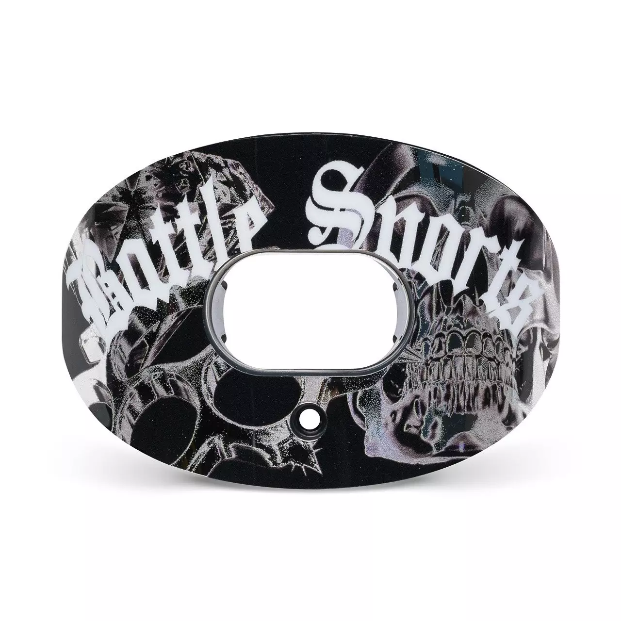 The Battle Sports Oxygen Chrome Skulls Football Mouthguard is the original patented mouthguard designed and developed by athletic, dental and medical experts to deliver superior airflow and better overall performance on the field.