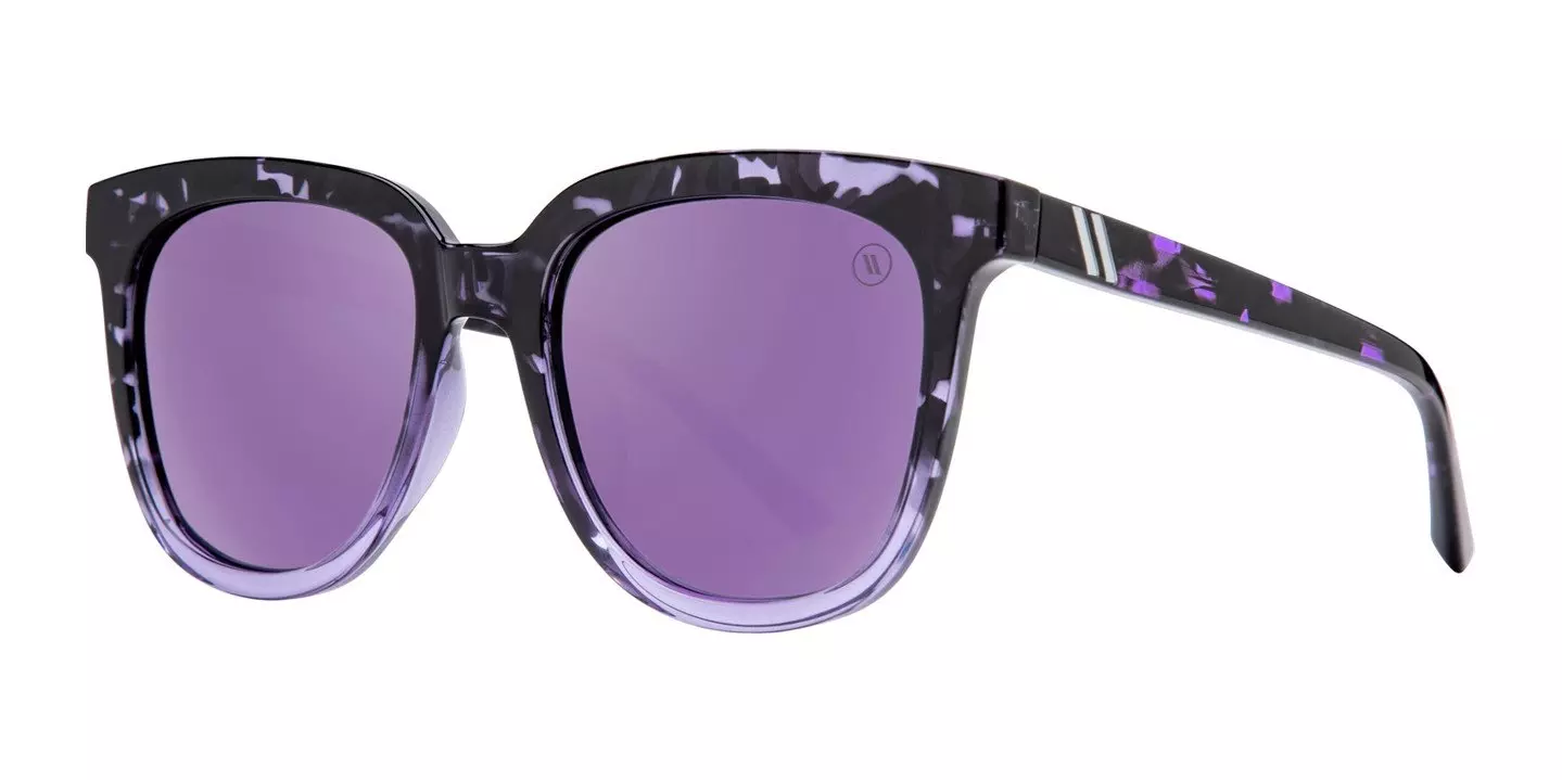 Blenders Grove Raven Delight Polarized Mirrored SunglassesThe Blenders Grove Raven Delight Polarized Mirrored Sunglasses are polarized for your pleasure and styled for supreme satisfaction. The lavender lenses are ringed by a semi-transparent purple & black tortoise pattern that fades to lilac. The tortoise print continues from temple arm to tip, and it’s all doused in a gloss finish. Things "go to 11" thanks to the hand-crafted acetate construction, which ensures a premium fit and finish.
