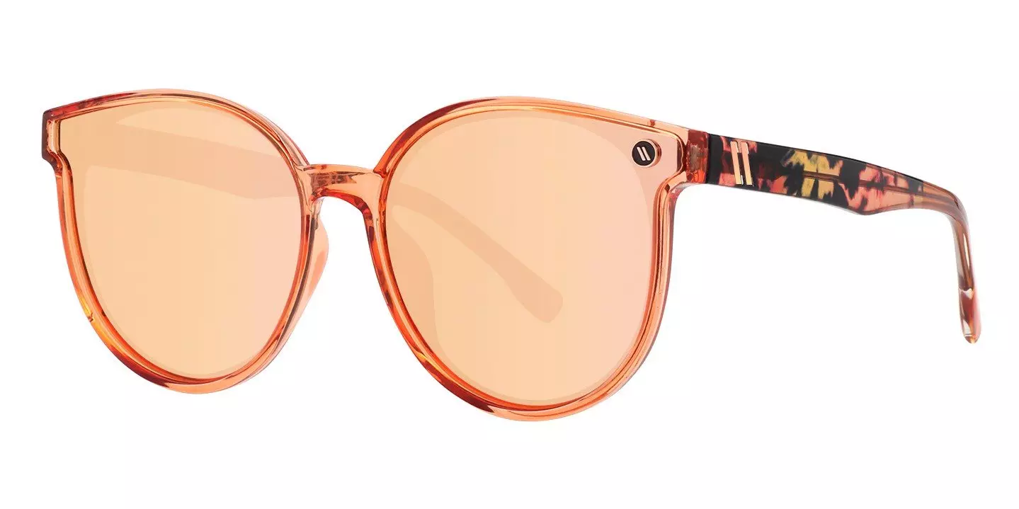 Blenders Lexico Flame Mingo Polarized Mirrored SunglassesA transparent peach frame, polarized champagne lens, and matching tie-dye pattern at the temples? Yeah, it can’t be denied: the Blenders Lexico Flame Mingo Polarized Mirrored Sunglasses burn bright. These progressive, oversized cat eye sunglasses are made for standing out. Rock these with the utmost confidence!