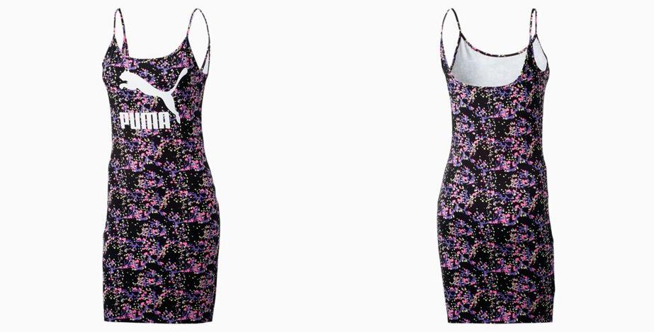 For look two, we augment the pink incorporated into the dress’ print by pairing it with a two-toned pink and white PUMA Women’s MCS Track Jacket and Future Rider “Grey/Pink/Purple” Women’s Shoes. By simply swapping shoes and adding an extra layer to our statement style, we’ve completely transformed our look!