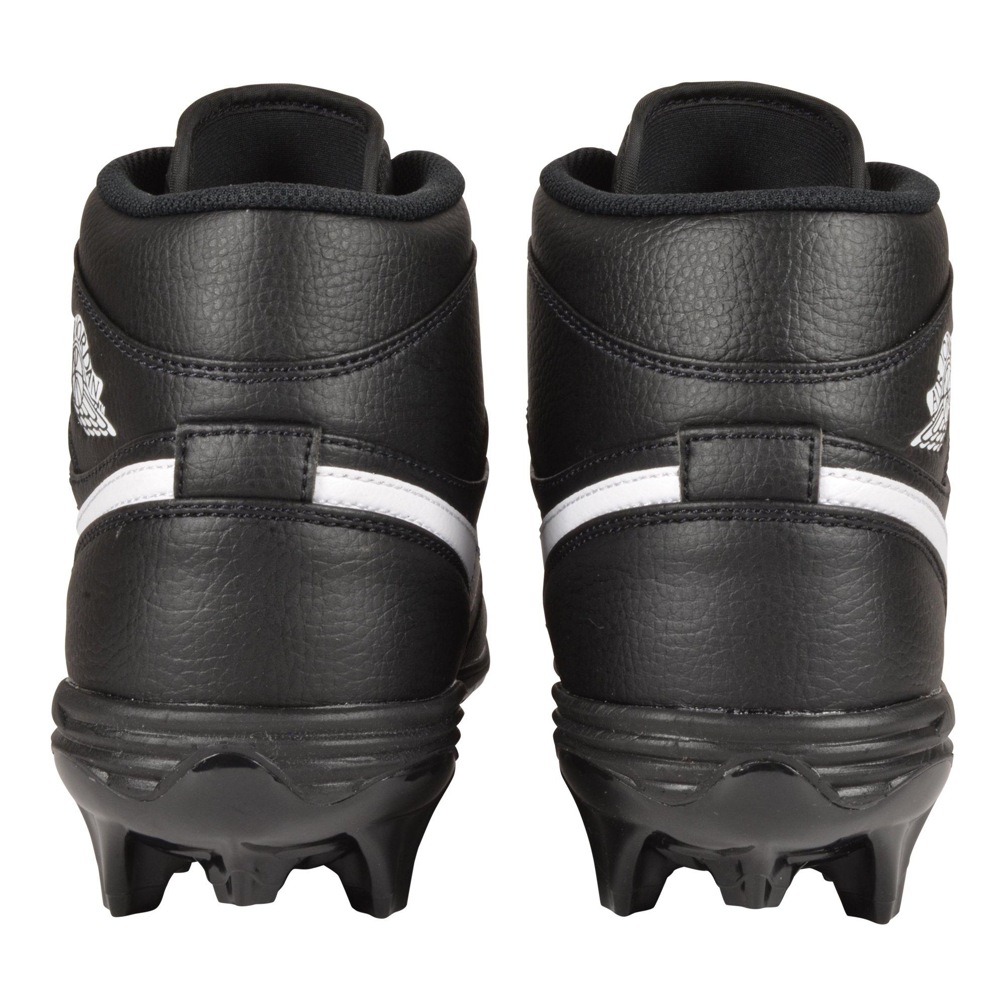 The Jordan 1 Mid TD features a completely black synthetic leather upper — great for standing up to dirt and mud as you get it done on the field. The only touch of color is the bright white Swoosh across the side panel, the original Air Jordan Wings logo on the lateral ankle and the tongue Jumpman.