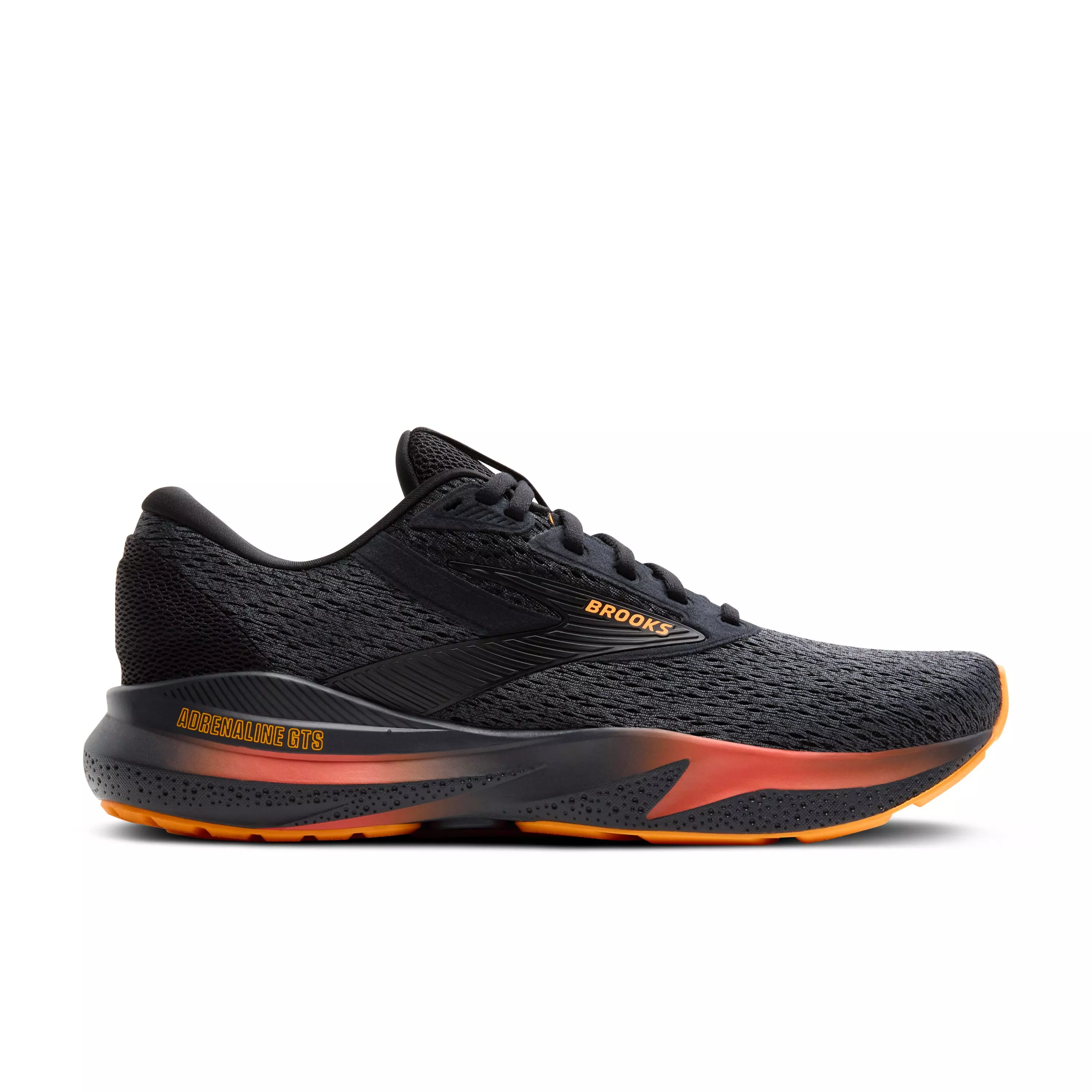 The Brooks Adrenaline GTS 24 "Black/Ebony/Burnt Sienna" Men's Running Shoe feature updated cushioning for lightweight softness. Our trusted GuideRails® support system helps reduce excess motion, and the mesh upper provides breathable comfort.Features