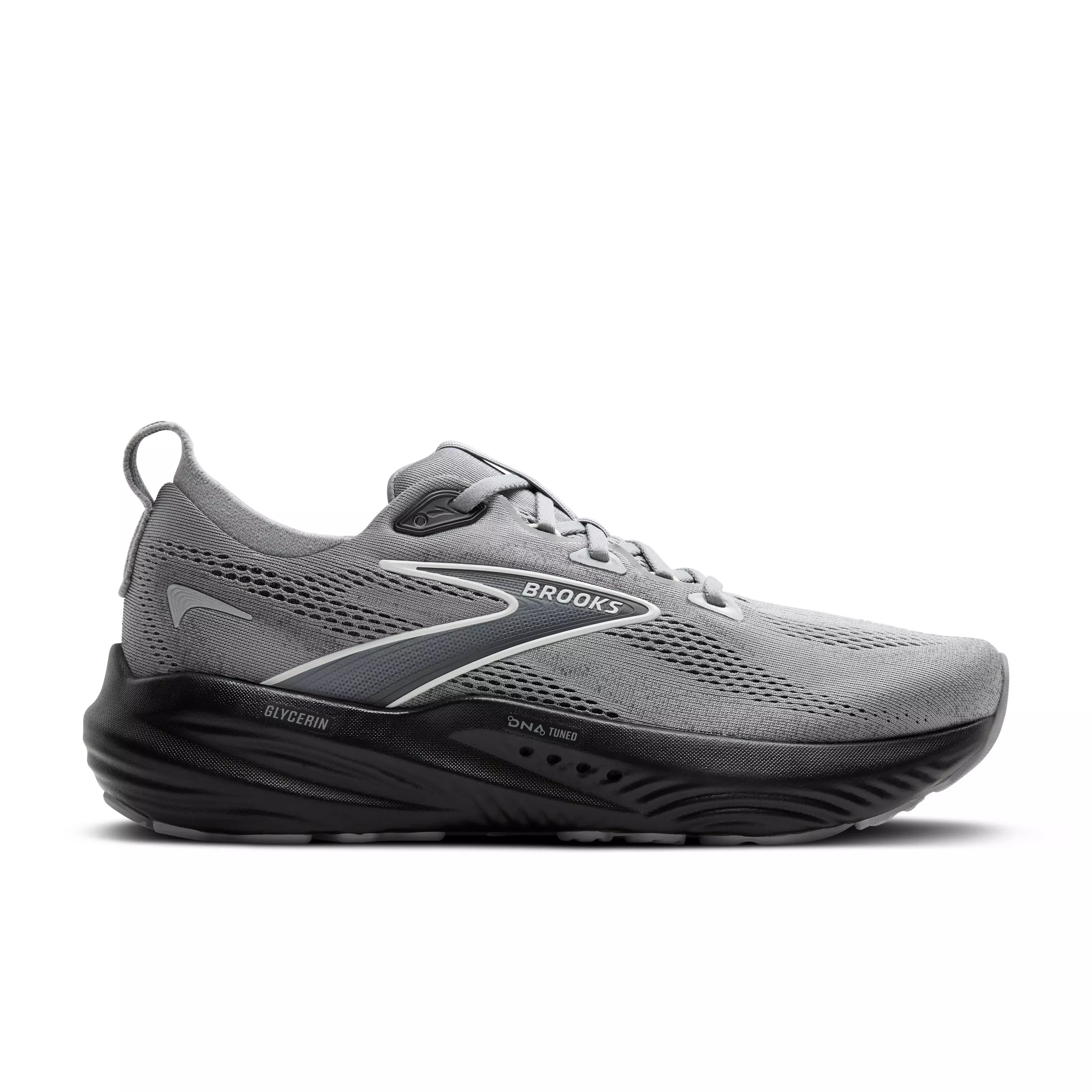 Feel limitless in this super-soft Brooks Glycerin 22 "Primer Grey/Ebony/Bluewash" Men's Wide Running Shoe. The midsole is made from DNA Tuned, innovative nitrogen-infused cushioning. The heel contains large cells for plush landings while the forefoot has small cells for energizing toe-offs.Features