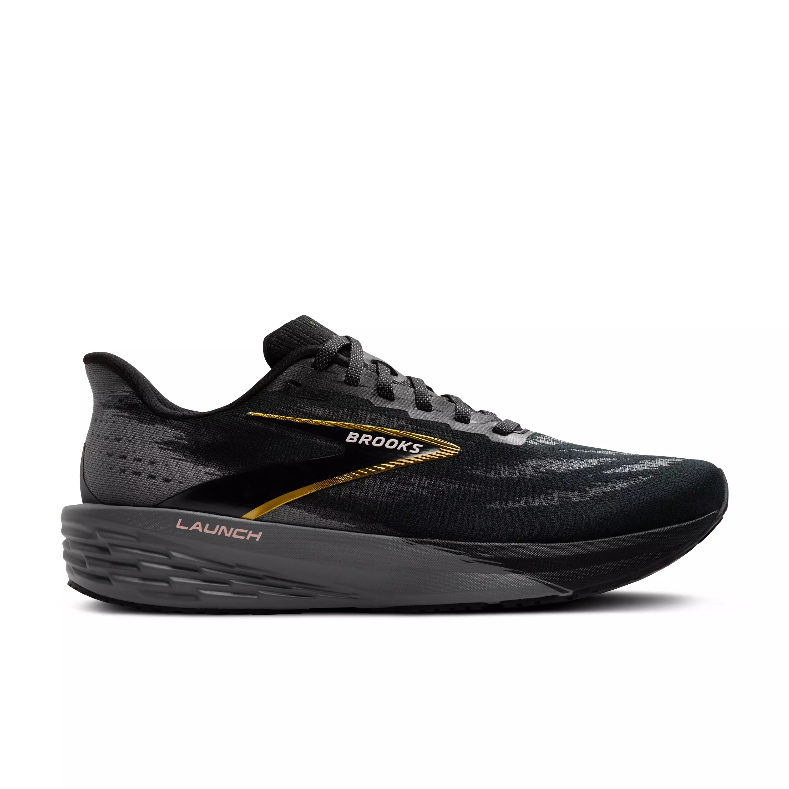 Push your pace in these lightweight men's running shoes. The Brooks Launch 11 "Black/Grey/Gold" Men's Running Shoe delivers a fast and versatile ride thanks to light, responsive cushioning and a streamlined, breathable upper to help eliminate distractions while you're on the move.Features
