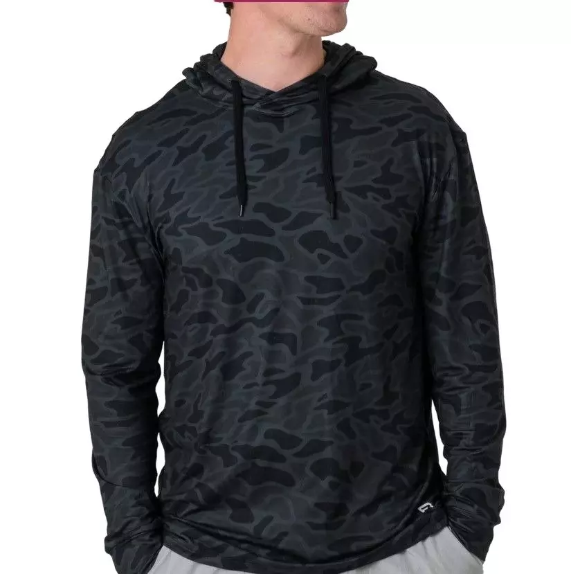 Performance Hoodie, designed for the modern athlete. Our #1 Best Selling Product. Created from a premium blend of 91% Polyester and 9% Spandex, this Burlebo Men's Performance Hoodie - Black Camo offers quick-dry, moisture wicking, and UPF 50 protection. Featuring anti-microbial technology, it keeps you fresh and odor-free. Versatile for any activity, wear it working out, fishing, hunting, or for everyday wear.Features