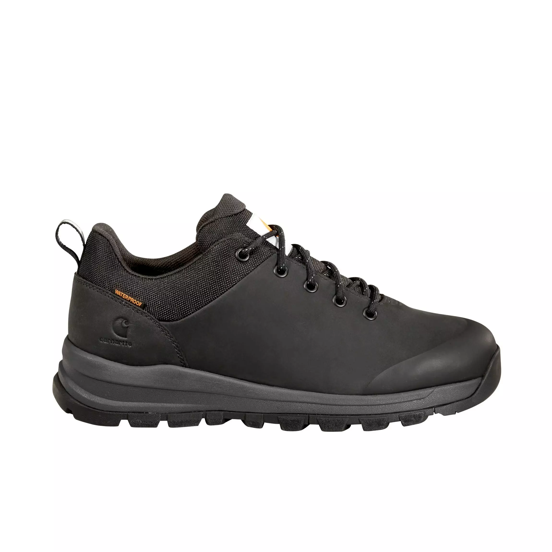 Carhartt Outdoor Waterproof Low "Black" Men's Hiker BootLow-profile trail shoe meets reinforced work shoe in these Carhartt Outdoor Waterproof Low "Black" Men's Hiker Boot. A durable leather upper with a waterproof, breathable membrane seals out wet, muddy conditions. An engineered footbed and cushioned midsole reduce fatigue when you're on your feet all day, letting you move and get the job done in comfort.
