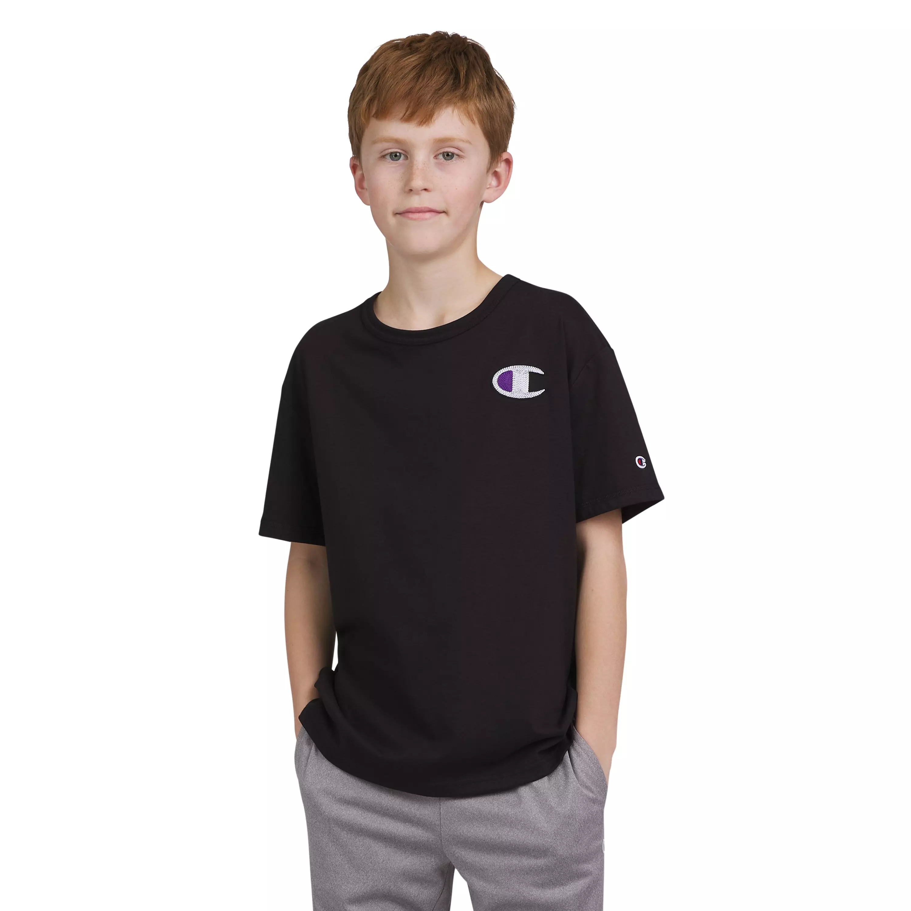 There's Champion heritage in every detail, our Champion Big Boys' Embroidered Logo Tee uses ring-spun, U.S. grown cotton for an ultra-soft feel. Dyed-to-match, embroidered C logo gives a nod to Champion’s athletic heritage while elevating this everyday tee. Looks great on its own or as your favorite base layer, this short-sleeve tee goes the extra mile with a sturdy ribbed collar and a higher stitch count for durability,