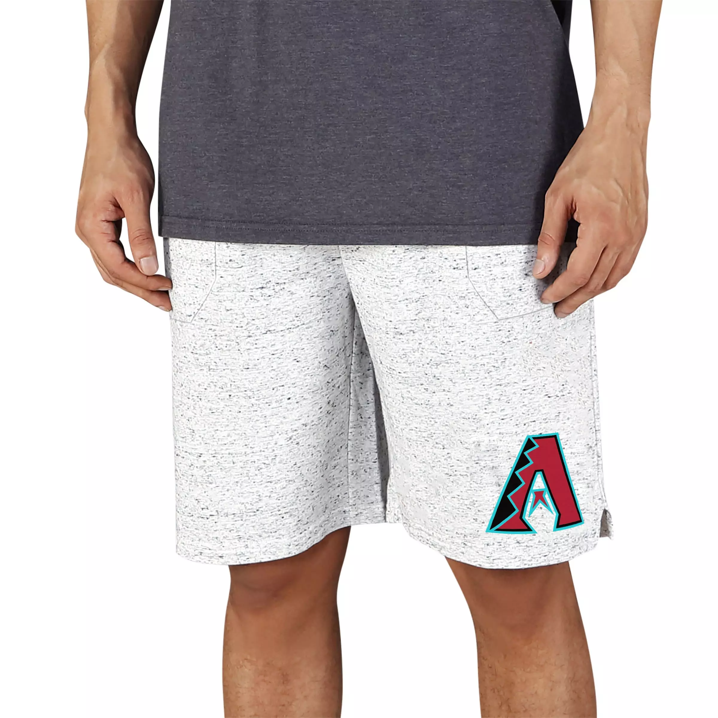These College Concepts Men's Arizona Diamondbacks Throttle Shorts - White/Charcoal combine loungewear with supporting your favorite team. The side slip pockets and drawstring with elastic waist provide comfort while the printed graphic puts your team spirit out on display for everyone to see.Features