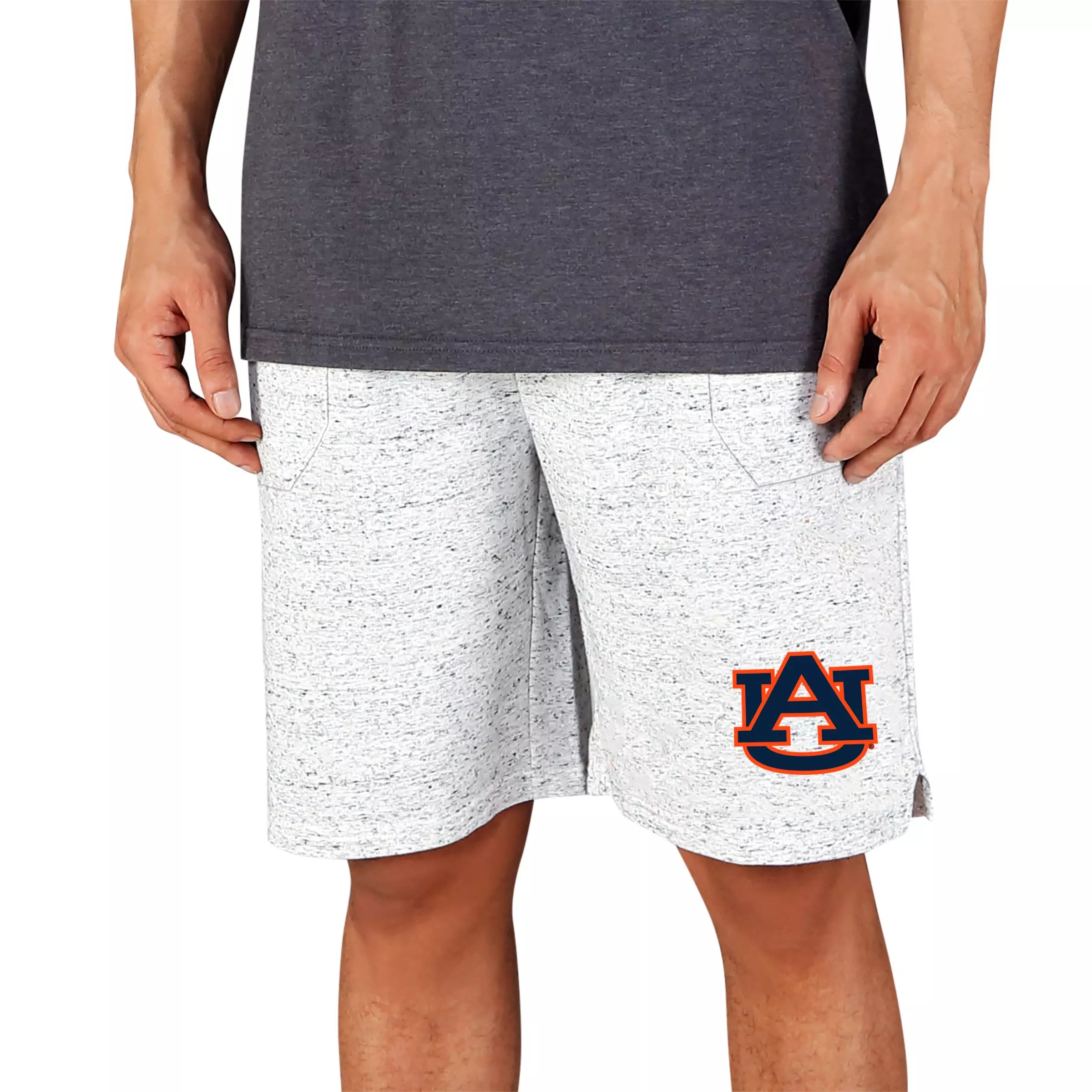 These College Concepts Men's Auburn Tigers Throttle Shorts - White/Charcoal combine loungewear with supporting your favorite team. The side slip pockets and drawstring with elastic waist provide comfort while the printed graphic puts your team spirit out on display for everyone to see.Features