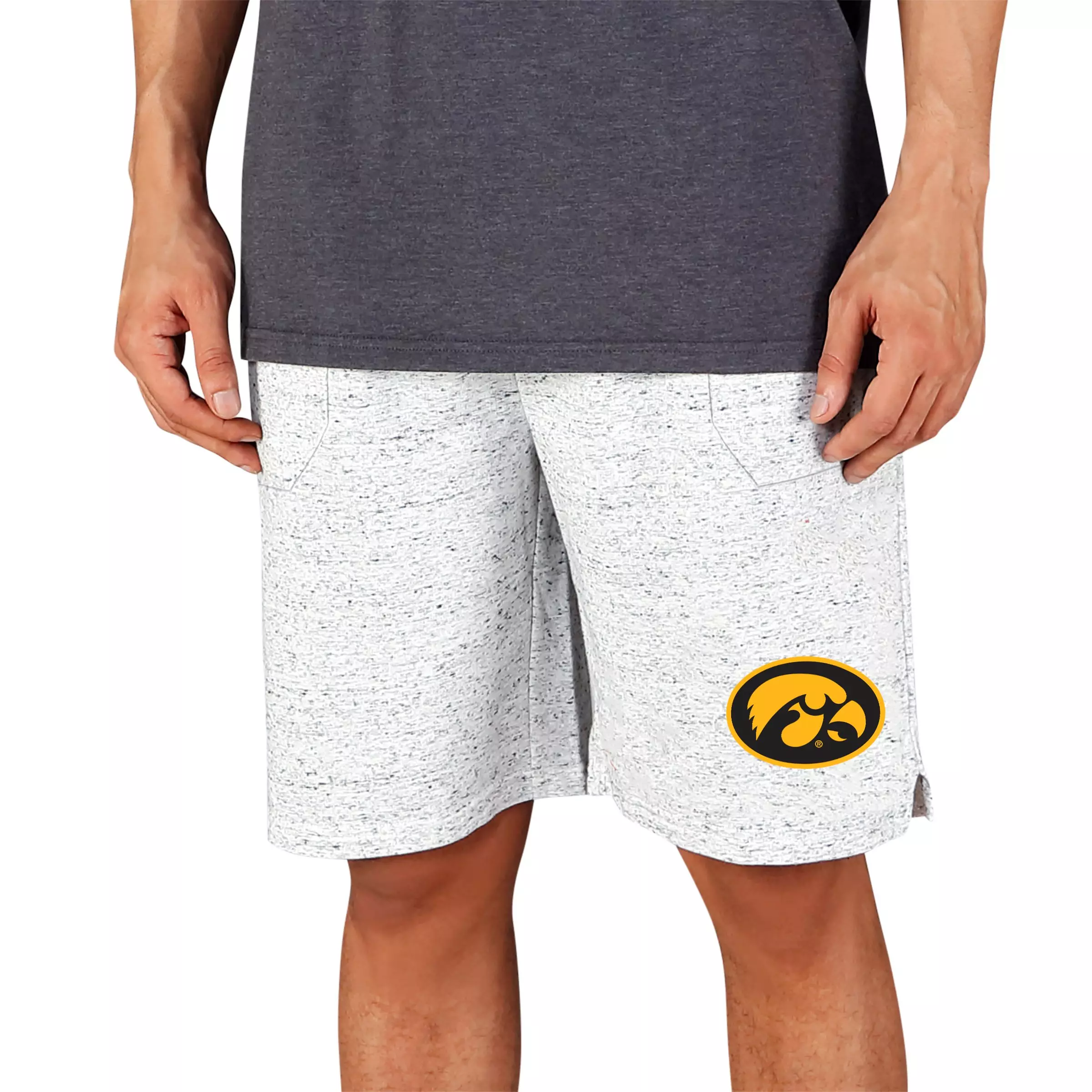 These College Concepts Men's Iowa Hawkeyes Throttle Shorts - White/Charcoal combine loungewear with supporting your favorite team. The side slip pockets and drawstring with elastic waist provide comfort while the printed graphic puts your team spirit out on display for everyone to see.Features